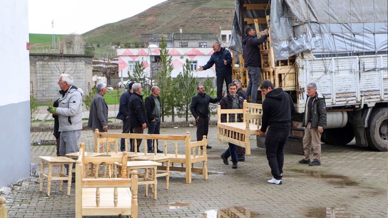 Belirlenen program çerçevesinde birbirine yakın mahallelere eş zamanlı teslimat gerçekleştiren ekipler, Hazro ilçesine bağlı 40 haneden oluşan İncekavak Mahallesi Taziye Evi’nde malzemeleri mahalle sakinleriyle birlikte taşıyarak kurulumunu yaptı.