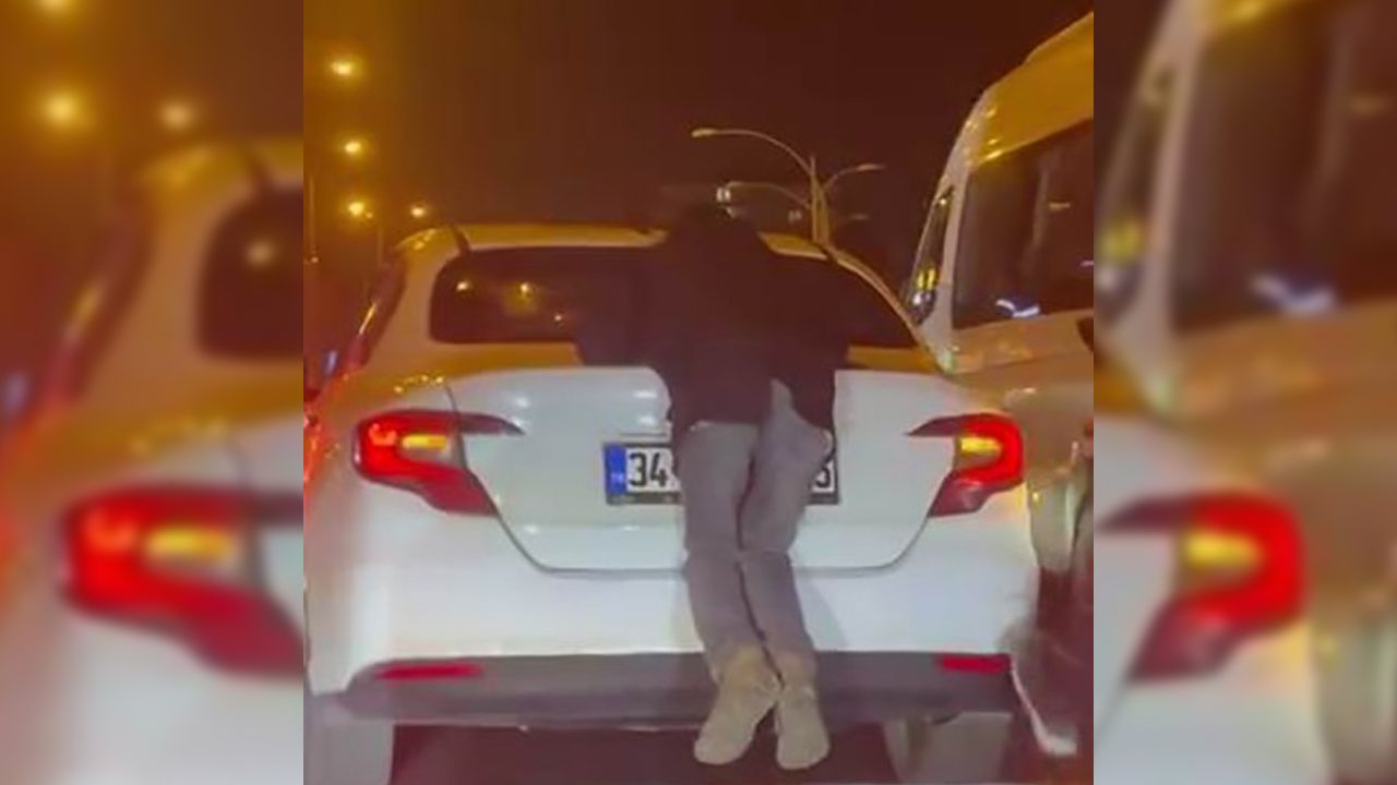 Merkez Kayapınar ilçesinde bir şahıs caddede seyir halinde olan bir aracın arka kaputuna tutunarak metrelerce yol aldı. Araçların korna çalarak uyardığı genç aldırış etmeden hem kendini, hem de trafiği tehlikeye attı. O anlarda cep telefonu kamerasına yansıdı.