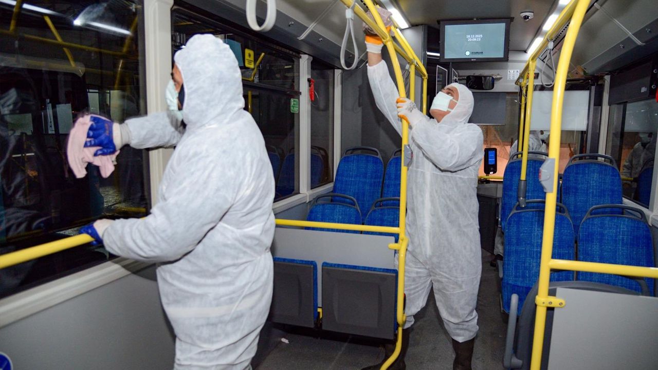 Diyarbakır Büyükşehir Belediyesi Ulaşım Dairesi Başkanlığı, toplu taşımada hijyen seferberliği başlattı. Gün boyu binlerce yolcu taşıyan belediye otobüsleri, seferlerini tamamlamalarının ardından gece boyunca kapsamlı temizlik ve dezenfeksiyon işleminden geçiriliyor.