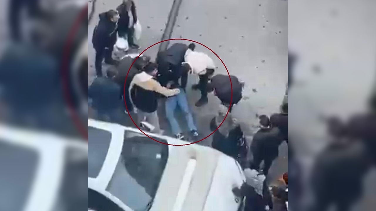 Kavga ve şüphelilerin hafif ticari araca binip kaçtığı anlar cep telefonu kamerasıyla kaydedildi.
