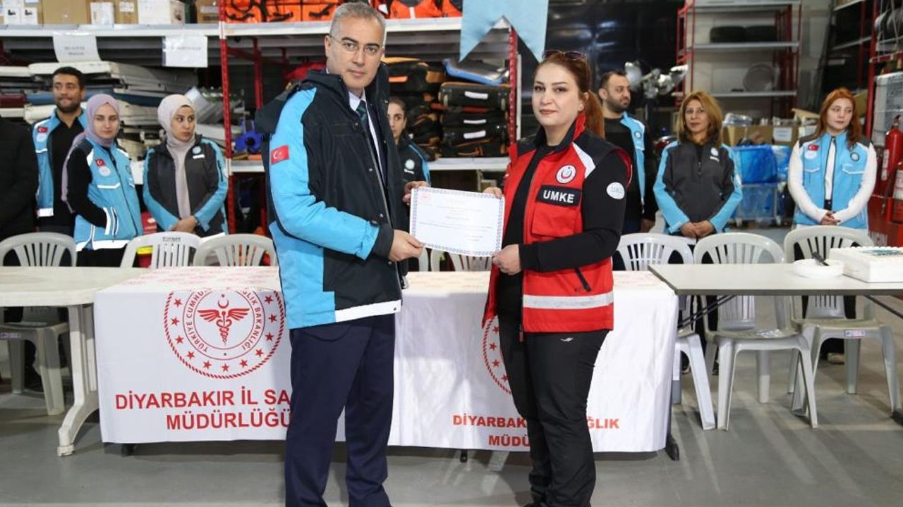 UMKE Temel Eğitimi ve UMKE Medikal Kurtarma Eğitimini başarıyla tamamlayan 46 sağlık personeli için mezuniyet programı düzenlendi. Törende konuşan Diyarbakır İl Sağlık Müdürü Uzm. Dr. Emre Asiltürk, afetlere hazırlığın yalnızca bir görev değil, aynı zamanda büyük bir sorumluluk olduğuna söyledi. 6 Şubat depremlerini hatırlatan Asiltürk, herkes uykudayken dakikalar içinde görev alanına ulaşan ekiplerin UMKE gönüllüleri olduğunu vurgulayarak, o süreçte ortaya konulan özverinin hafızalardan silinmeyeceğini kaydetti.