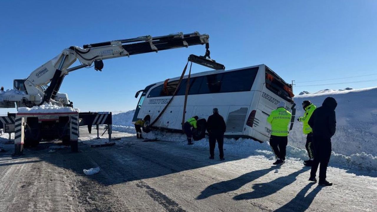 Edinilen bilgilere göre, sabah 03.00 sıralarında ilçenin Övündüler Mahallesi Tokaçlı Küme Evleri mevkiinde Hatay’dan Van’a giden 65 ADD 803 plakalı yolcu otobüsü, kayganlaşan yolda sürücünün direksiyon hakimiyetini kaybetmesi sonucu devrildi.