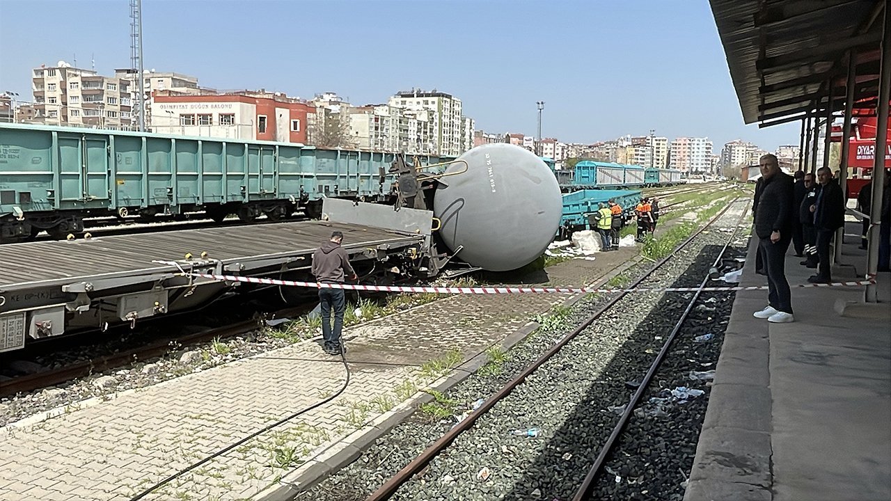 Batman'dan Kırıkkale'ye akaryakıt taşıyan trenin son vagonu, Diyarbakır Gar'ında raydan çıkarak devrildi.