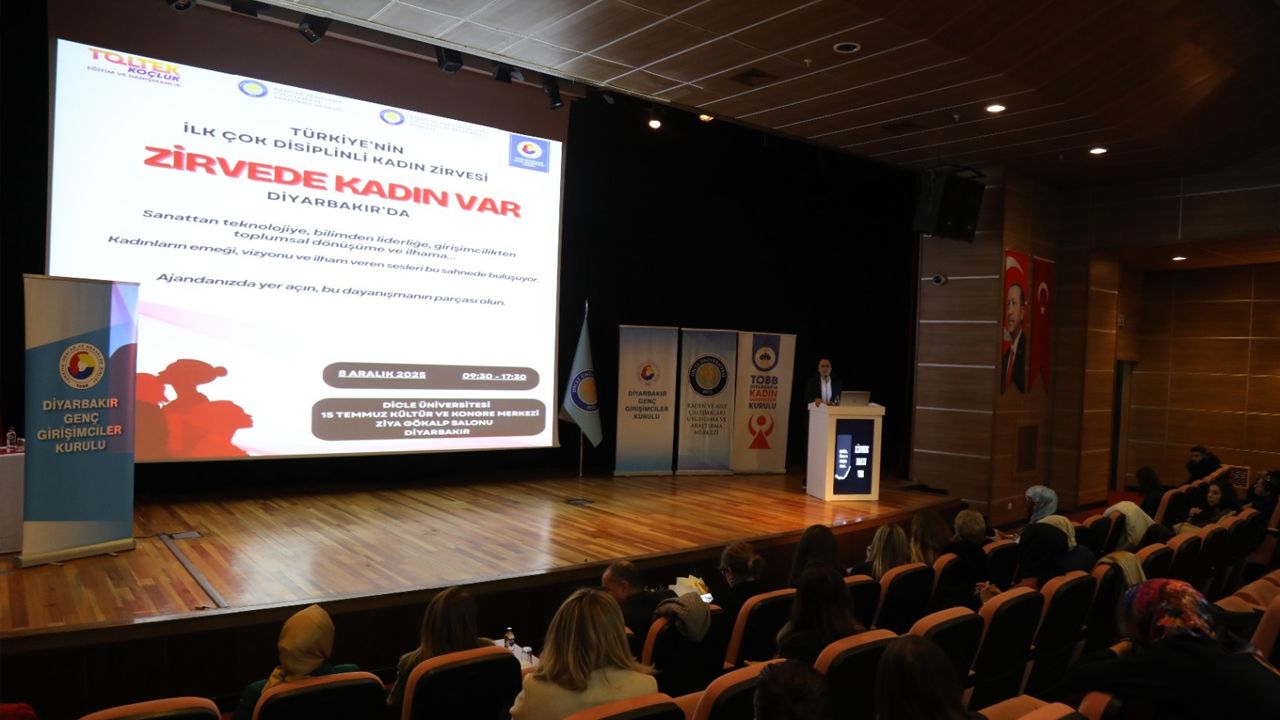 DTSO’nun deteği, TOBB Diyarbakır Kadın Girişimciler Kurulu, TOBB Diyarbakır Genç Girişimciler Kurulu ve Toltek Koçluk Eğitim ve Danışmanlığın işbirliğiyle Dicle Üniversitesi Kongre Merkezi’nde “Zirvede Kadın Var” etkinliği düzenlendi. Çok sayıda kadın girişimcinin katıldığı programda konuşan TOBB Diyarbakır Kadın Girişimciler Kurulu Başkanı Cevher Defne Eyyubi, kadınların iş gücüne katılımının sadece sosyal bir beklenti değil, ülkelerin kalkınma stratejisinin temel unsurlarından biri haline geldiğini söyledi.