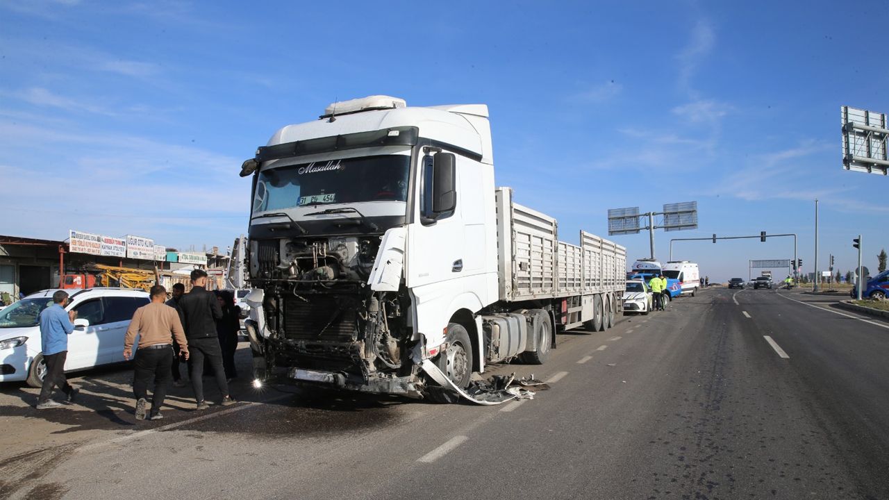 Kaza anı, bir iş yerinin güvenlik kamerasınca kaydedildi. Görüntüde, bir tırın kavşakta taksi ve hafif ticari araca çarptığı görülüyor.