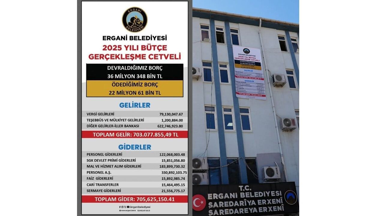 Diyarbakır’ın Ergani ilçesinde belediye yönetimi, şeffaflık ve hesap verebilirlik vurgusuyla dikkat çeken bir uygulamaya imza attı. Ergani Belediyesi, 2025 yılına ait Gelir-Gider Tablosu’nu belediyenin Ana Hizmet Binası’na asarak vatandaşların bilgisine sundu.