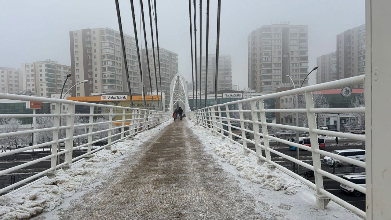 Kar yağışı durmuş olsa da Diyarbakır’da kışın zorlu yüzü etkisini sürdürüyor. Uzmanlar, buzlanmanın tamamen ortadan kalkana kadar vatandaşların üst geçitleri kullanırken dikkatli olmaları konusunda uyarıyor.