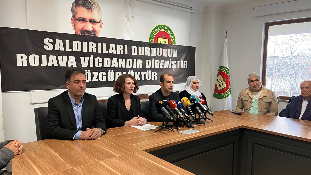 Demokratik Kurumlar Platformu, Demokratik Birlik İnisiyatifi ve Kürdi partiler, Kuzey ve Doğu Suriye’de yaşanan çatışmalara ilişkin Diyarbakır Barosu’nda basın açıklaması yaptı. Açıklamaya DBB Eş Genel Başkanları Çiğdem Kılıçgün Uçar ve Keskin Bayındır, DEM Parti Diyarbakır Milletvekilleri Serhat Eren ve Mehmet Kamıç ile çok sayıda kurum ve STK temsilcisi katıldı.
