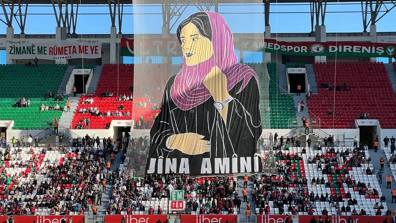 25 Kasım ‘Kadına yönelik şiddete karşı uluslararası mücadele günü’ nedeniyle Diyarbakır stadyumunda oynanan Amedspor Kadın futbol takımı ile Tarabzon maçı öncesi tüm kadınlar maça davet edildi. Karşılaşma öncesi açılan koreografi ile birlik ve beraberlik mesajı verilirken, İran’da hayatını kaybeden genç kadın Jina Mahsa Amini de unutulmadı.