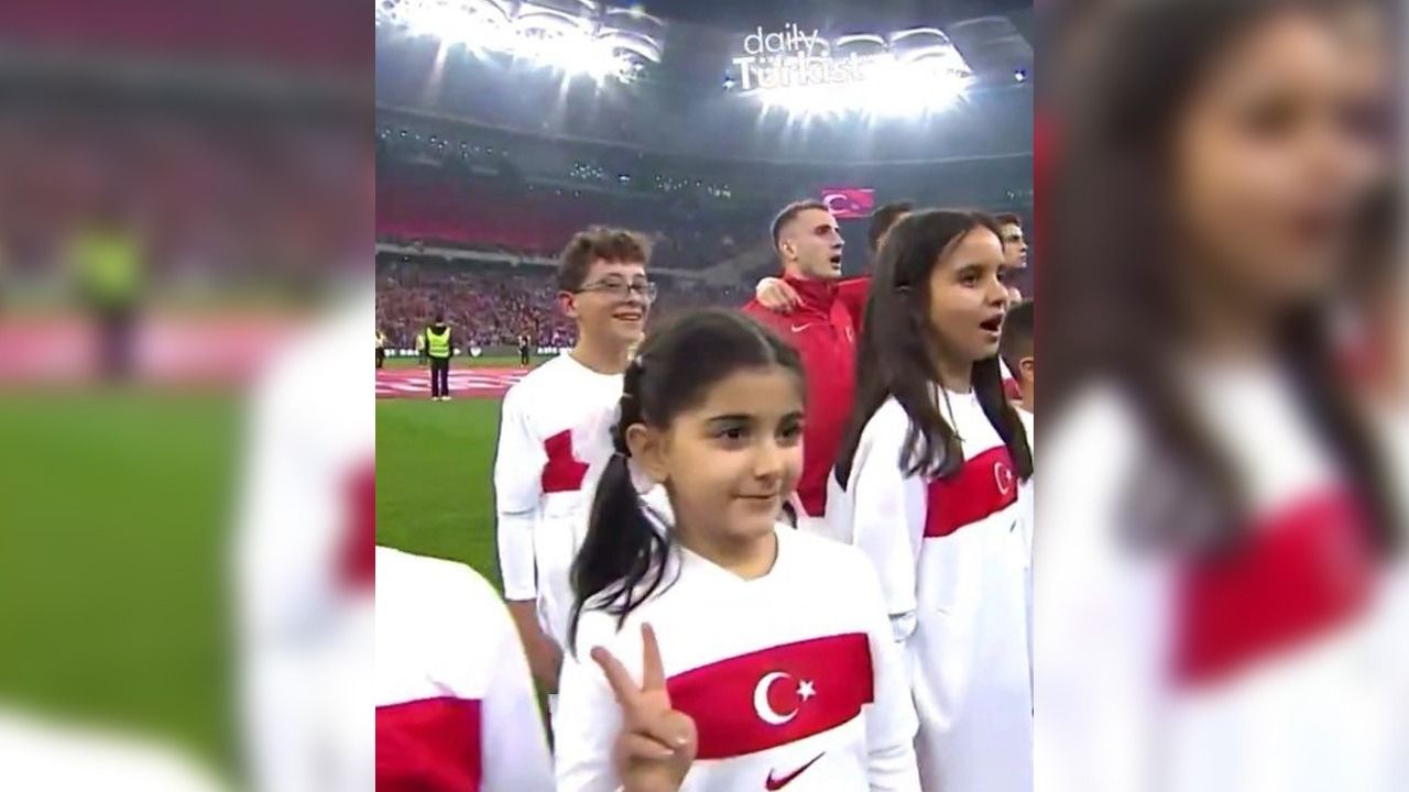 Türkiye A Milli Takım’ın sahaya çıkışı sırasında futbolcuların yanında duran çocuklardan küçük bir kızın yaptığı zafer işareti, sosyal medyada gecenin en çok konuşulan görüntüsü oldu. Türkiye’nin mücadeleyi 2-0 kazandığı ve 45 bin taraftarın tribünleri doldurduğu karşılaşmada bu küçük detay büyük yankı uyandırdı.