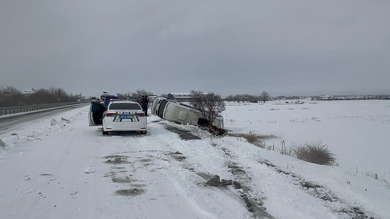 Elazığ-Bingöl kara yolu Mollakendi mevkiinde Kovancılar-Elazığ seferini yapan 23 K 5206 plakalı minibüs, karla kaplı yolda kayarak şarampole devrildi. Kazada, 9 kişi yaralandı.