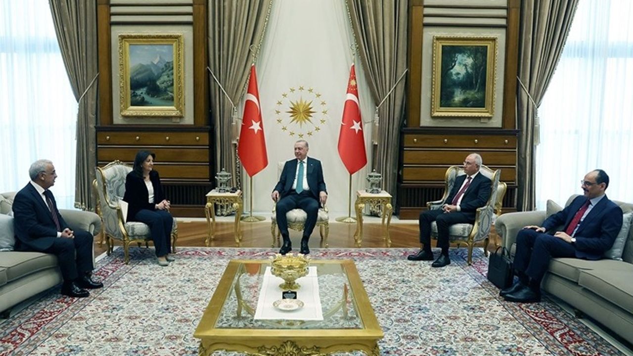 “DEM Parti İmralı Heyeti olarak, Cumhurbaşkanı Sayın Recep Tayyip Erdoğan ile önemli bir görüşme gerçekleştirdik. Sayın Cumhurbaşkanı Erdoğan ile bölgemizde yaşanan gelişmeler, bu gelişmelerin Türkiye’ye ve Barış ve Demokratik Toplum Süreci’ne etkileri üzerine istişarede bulunduk. Görüşmede, sürecin kararlılıkla sürdürüleceğine dair ortak irade bir kez daha teyit edildi.