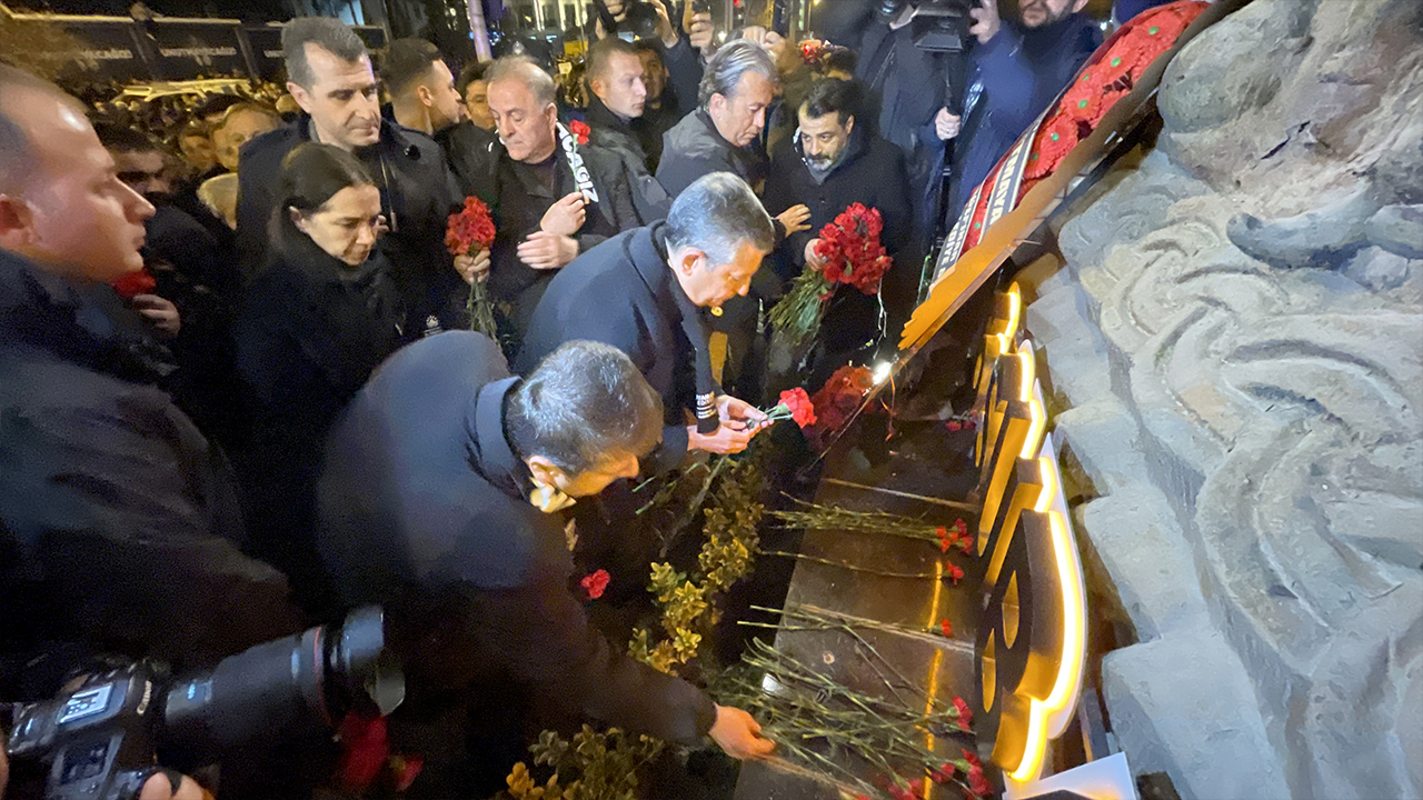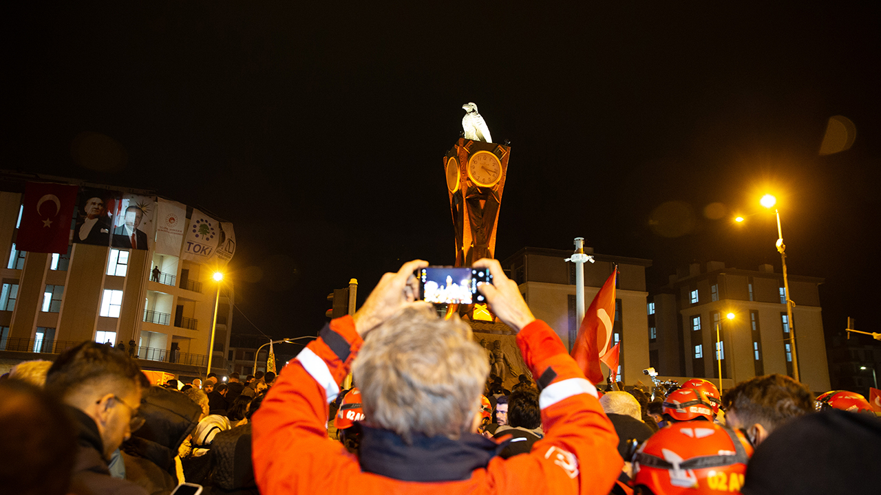 Kalabalık, daha sonra ilk depremin meydana geldiği saat olan 04.17'de ellerindeki karanfilleri Saat Kulesi'ne bıraktı.