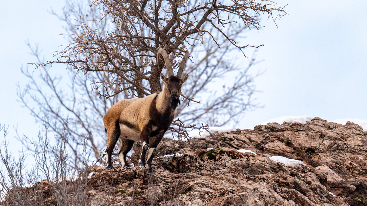 Merkeze bağlı Koçali köyü yakınlarında bulunan yaban keçileri, yiyecek ararken görüntülendi.