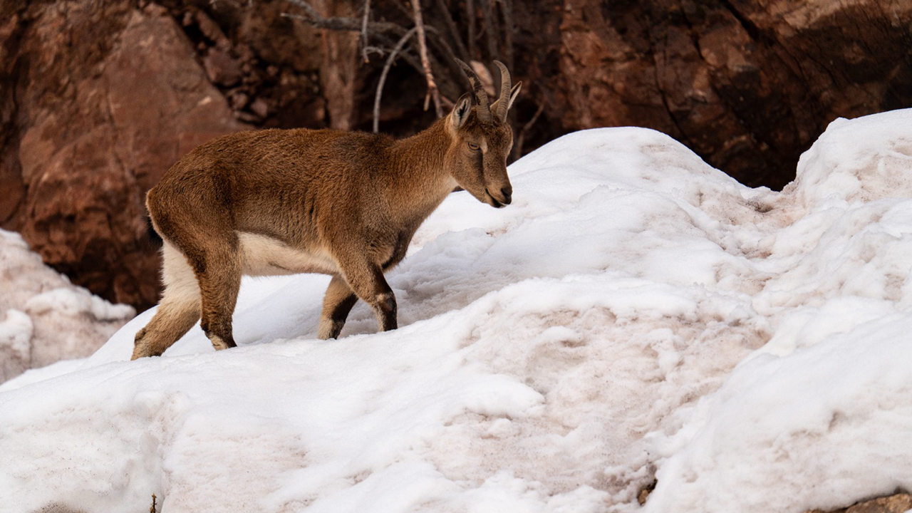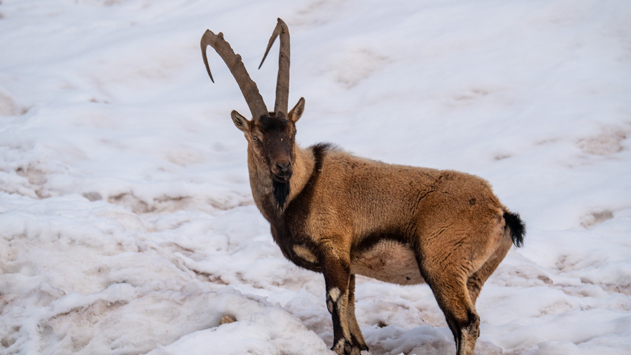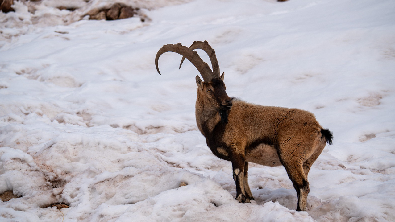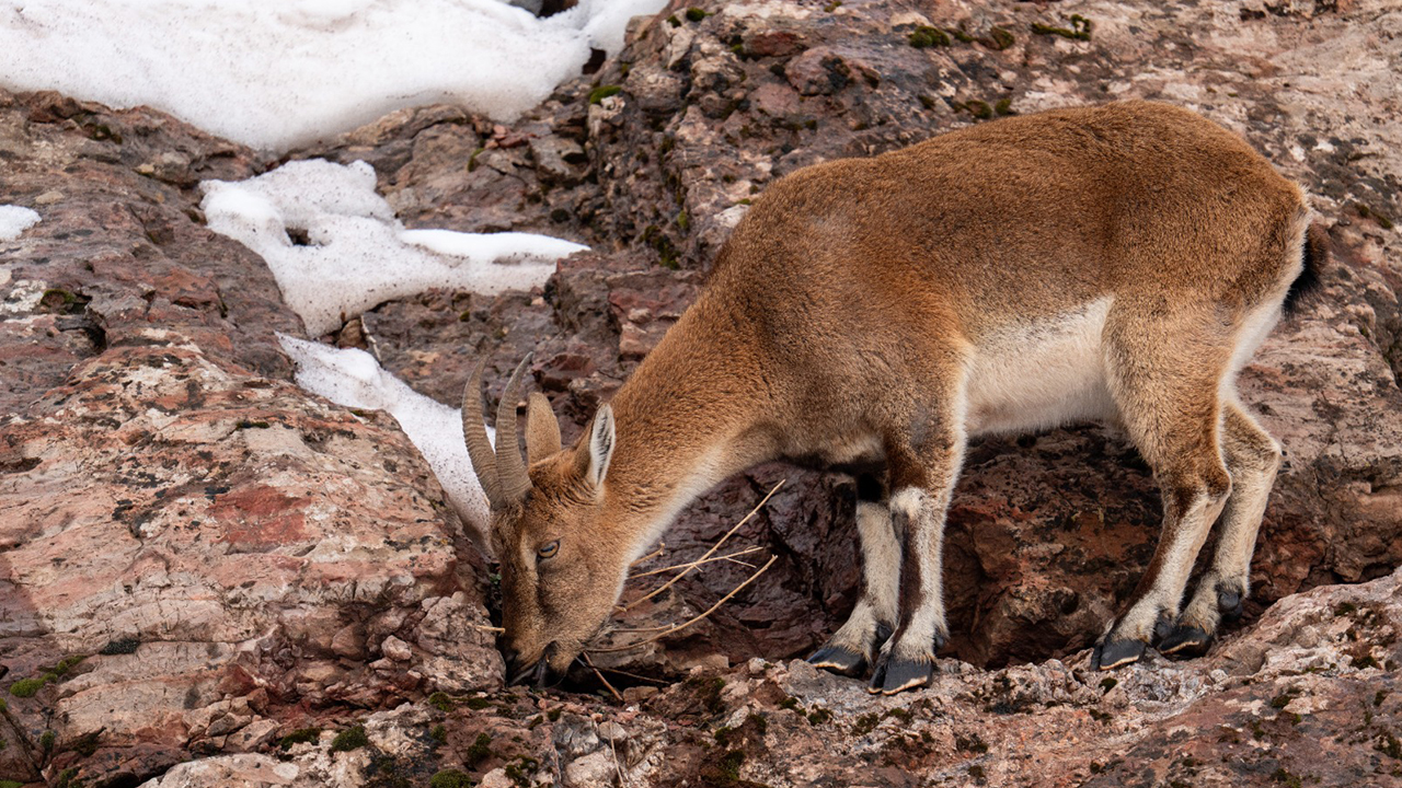 Görüntülerde, keçilerin karlı alanlarda yiyecek araması ve otlanması yer aldı.