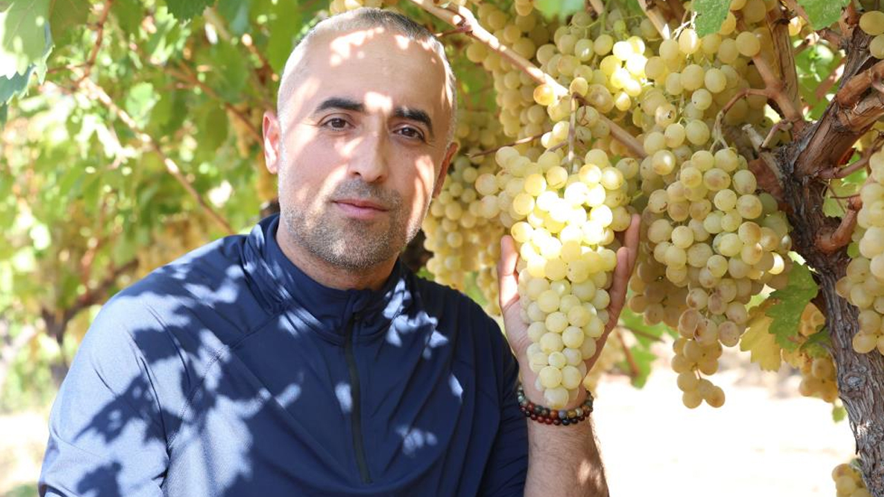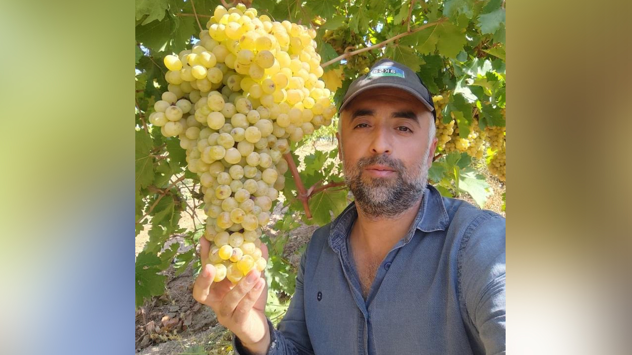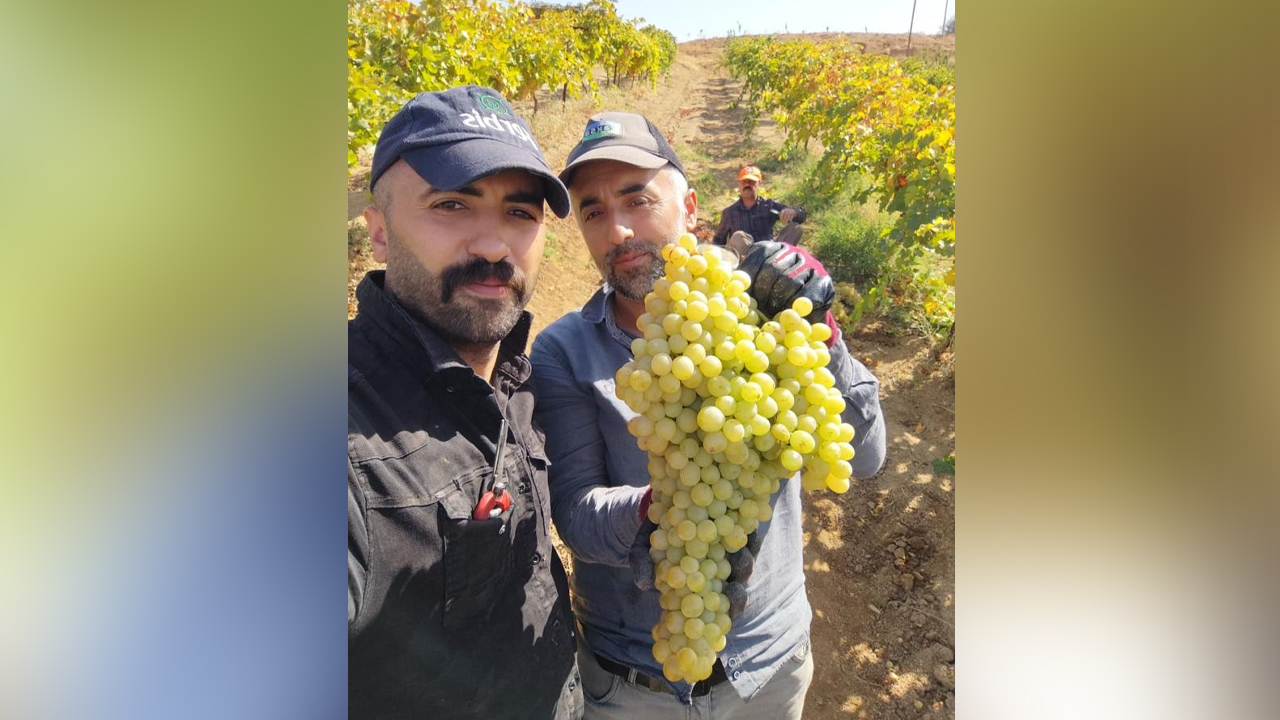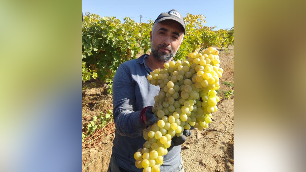 Sezonun en büyük üzüm salkımını topladıklarını belirten Necip Ekinci, "Üzüm yetiştiriciliği yapıyoruz. Bölgesel olarak üzüme elverişli olan topraklardayız.