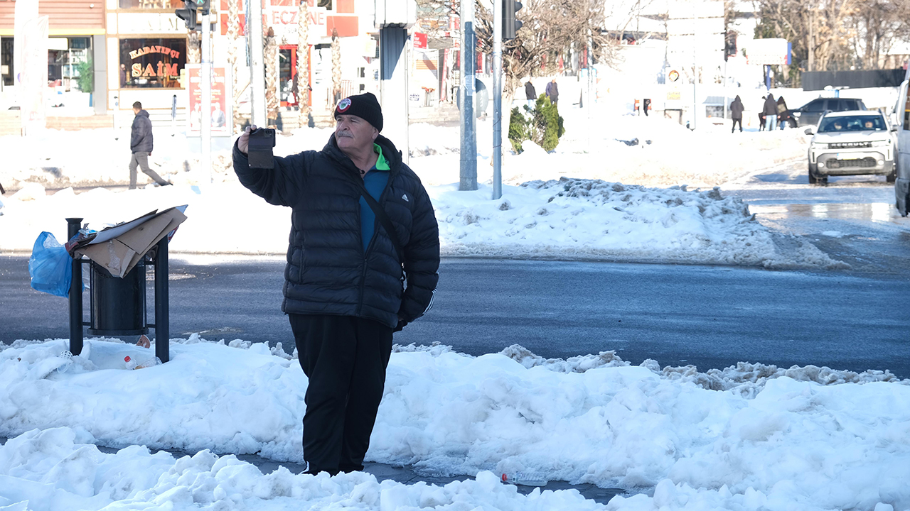 Vatandaşlar ise günler sonra güneşli havayı fırsat bilerek sokaklara çıktı, bir yandan güneşin diğer yandan da karın keyfini çıkartmaya çalıştı.