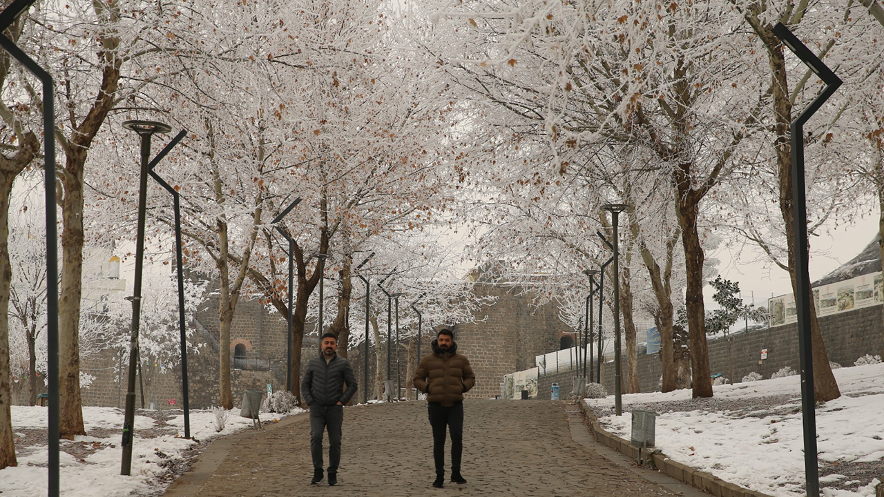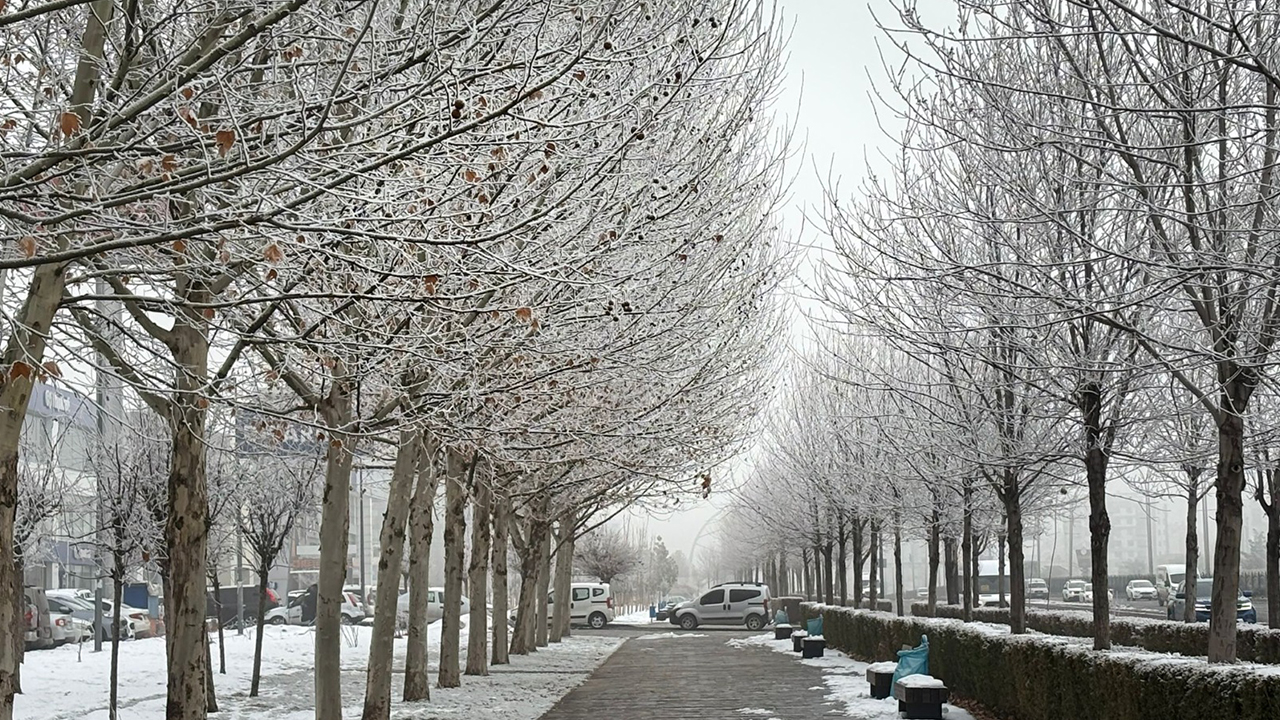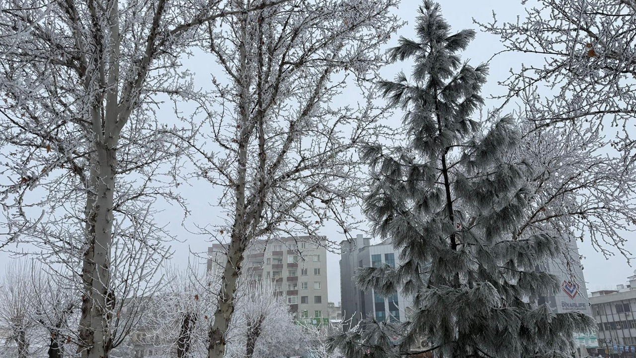 Kar yağışının ardından kentte etkili olan yoğun sis ve soğuk hava hayatı olumsuz etkilerken kentte, ağaçlar ve bitkilerin kırağıyla kaplanması adeta görsel şölen oluşturdu.