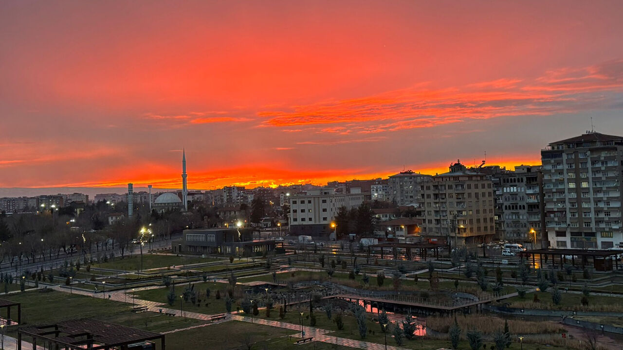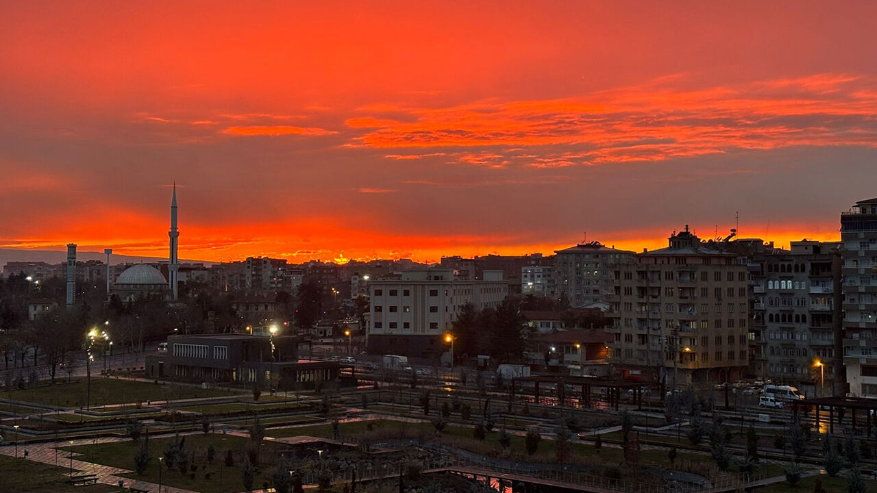 Baharın yaklaşmasıyla birlikte hava sıcaklıklarının yükseldiği kentte, gün batımı sırasında ortaya çıkan kızıl manzara özellikle Millet Bahçesi ve çevresinde kartpostallık görüntüler oluşturdu. Gökyüzündeki bulutların güneş ışıklarıyla kızıl ve turuncu tonlara bürünmesi, Diyarbakır’ın tarihi siluetiyle birleşince ortaya etkileyici kareler çıktı.