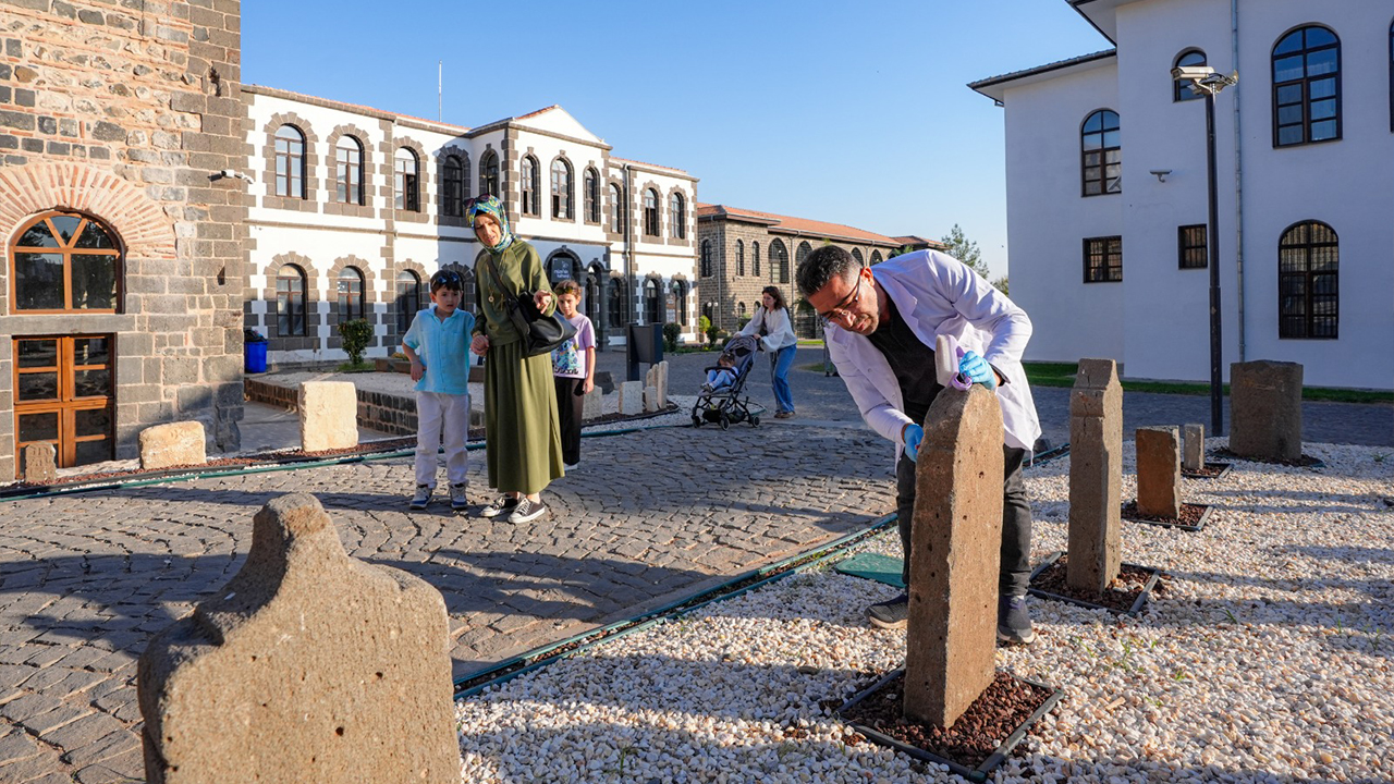 Yaklaşık 2 bin yıl öncesine kadar Diyarbakır'da hüküm süren medeniyetlere ait mezar taşları var. Burada toplumsal statü ve farklı meslekleri yansıtan mezar taşlarını gördük.