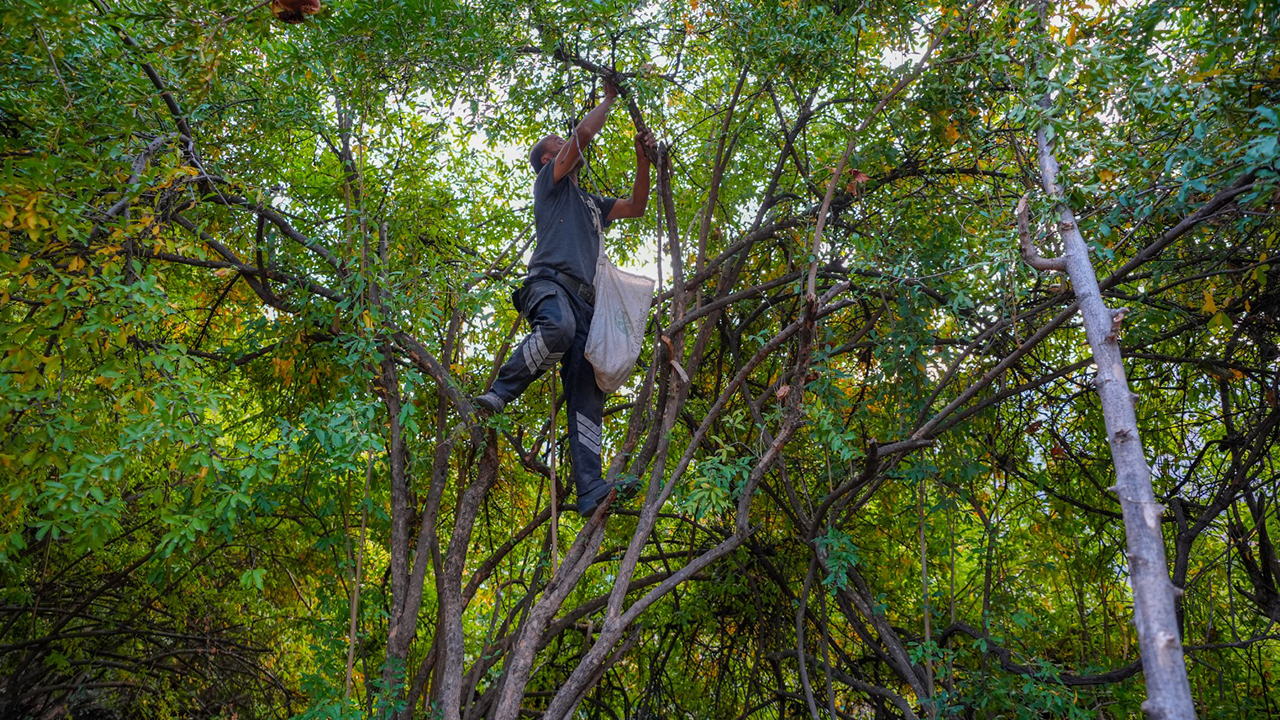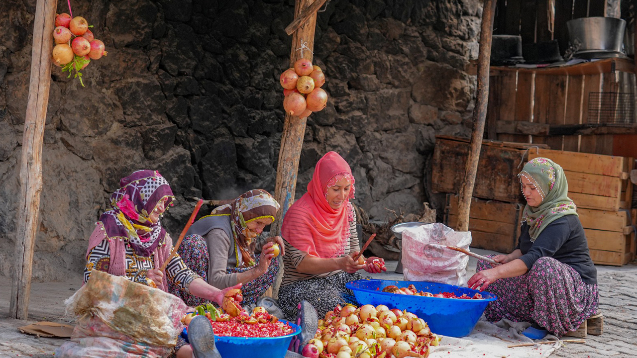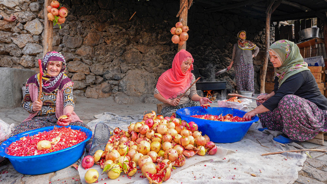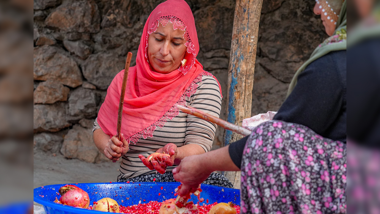 "Olgunlaşan narlar çatlıyor, biz de topluyoruz ve eve getiriyoruz. Tanelerini değnekle döküyoruz. Suyunu çıkarıp kaynatıyoruz.