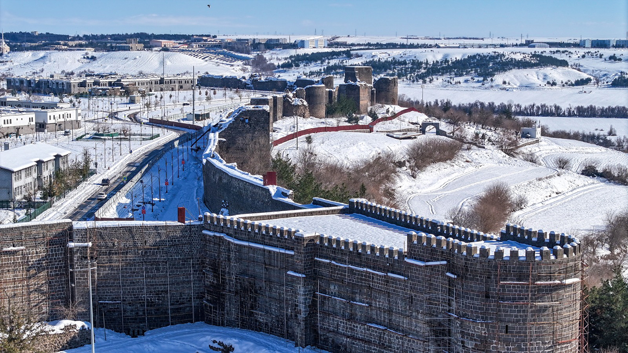 UNESCO Dünya Kültür Mirası Listesi'nde yer alan Diyarbakır Surları, İçkale Müze Kompleksi, Ongözlü Köprü, İslam'ın 5. Harem-i Şerif'i kabul edilen Ulu Cami, Fatih Paşa (Kurşunlu) Camisi gibi tarihi ve kültürel mekanlar, kar yağışının ardından güzelliklerine güzellik kattı.