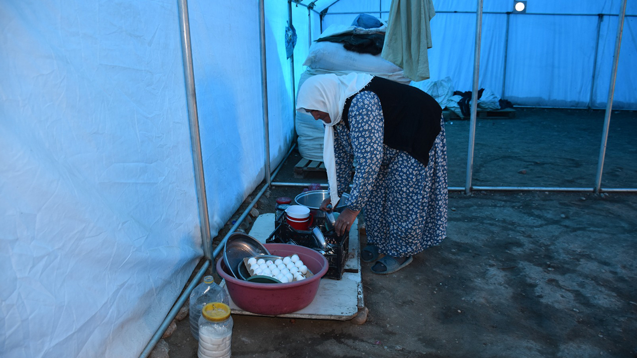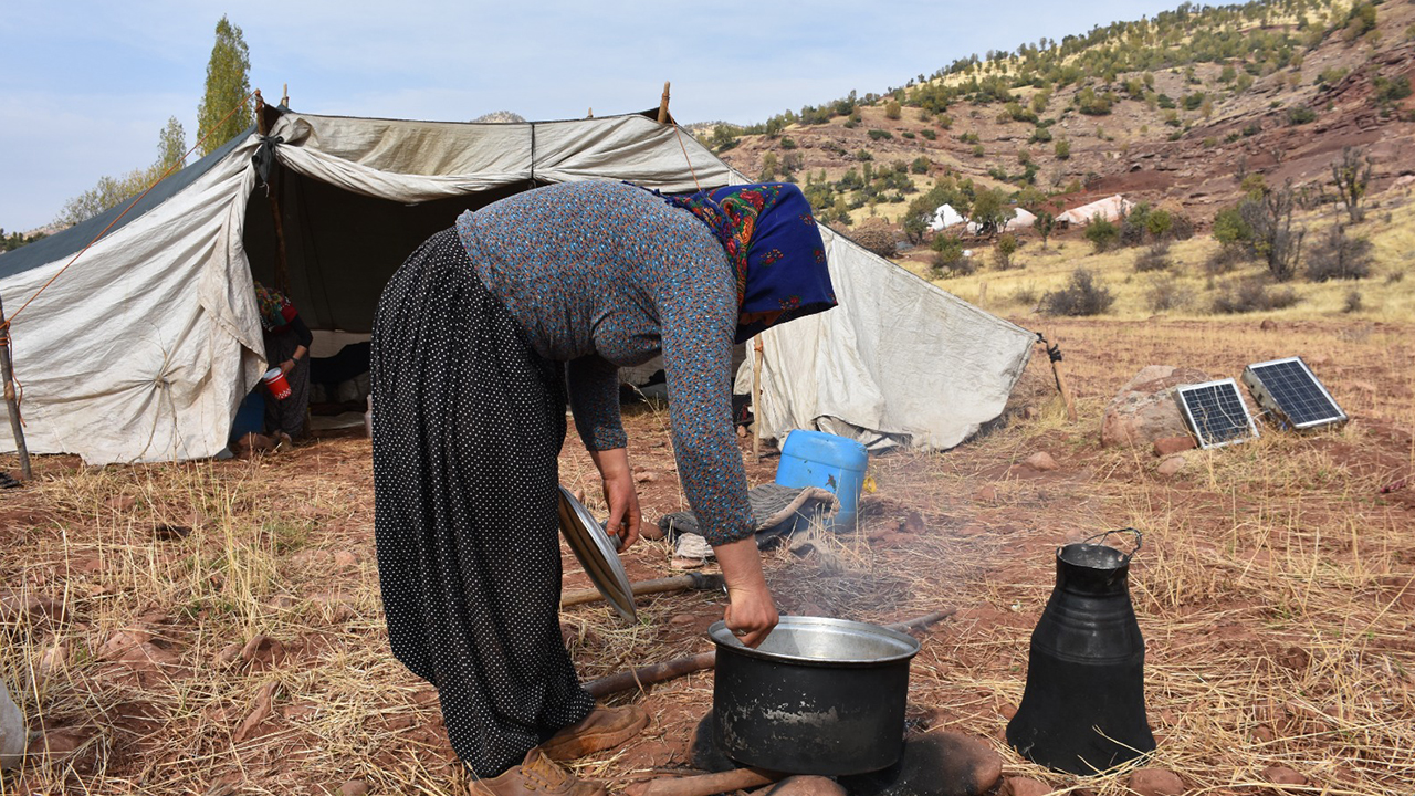 Soğunç, "20 kişilik bir aileyiz. Çadırları kurmak için amcama yardım ediyorum. Evin diğer kadınları da yardım ediyor. Çadırların bir kısmında biz kalacağız, bazılarını hayvanlar için kurduk, ayrıca kışlık yemleri muhafaza ettiğimiz çadırlar var. Bir ayda bu çadırları kurduk, çok zorlanıyoruz ama yapacak bir şey yok" diye konuştu.