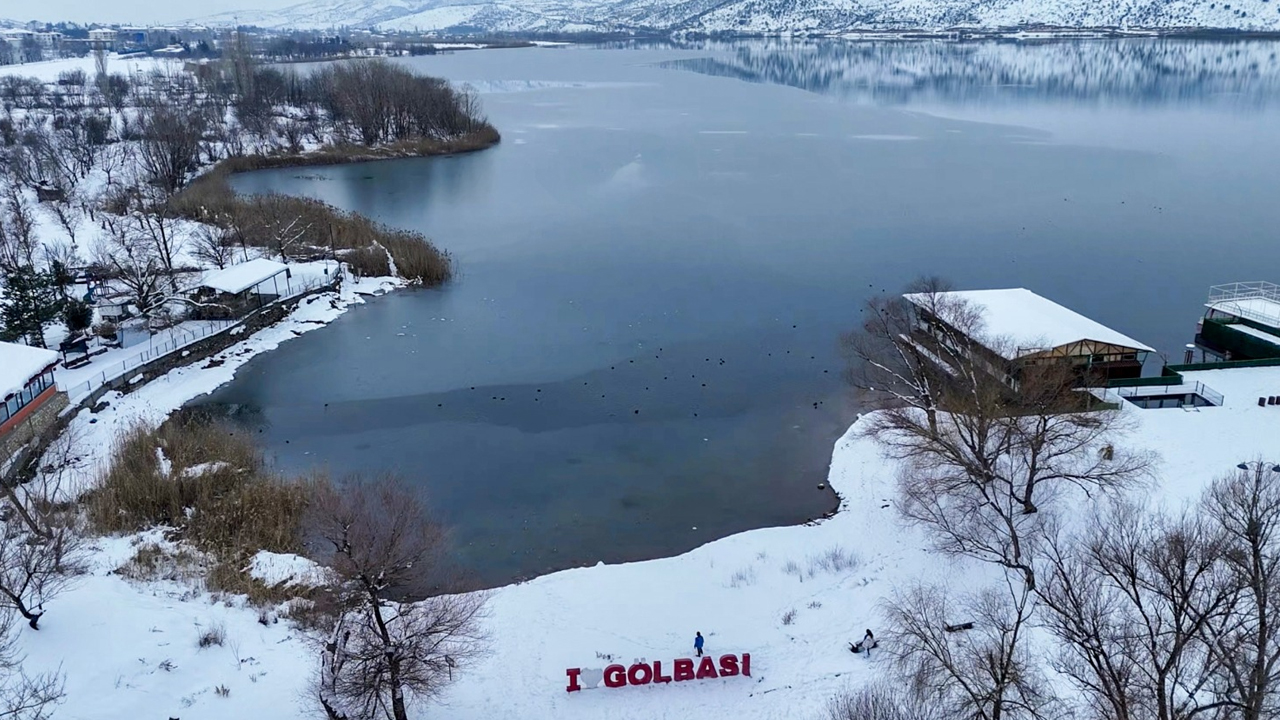 uz tutan göl ve çevresindeki karla kaplı alanlar, ortaya kartpostallık görüntüler çıkardı.