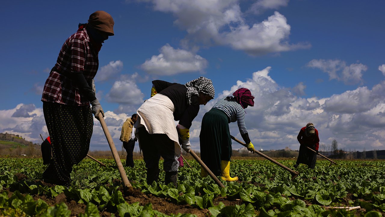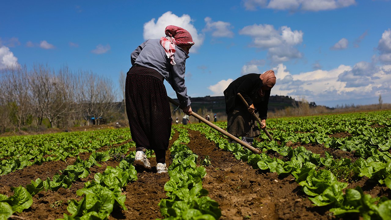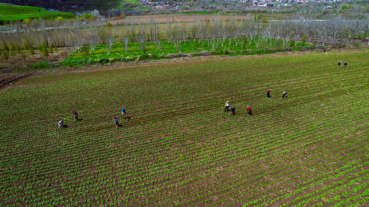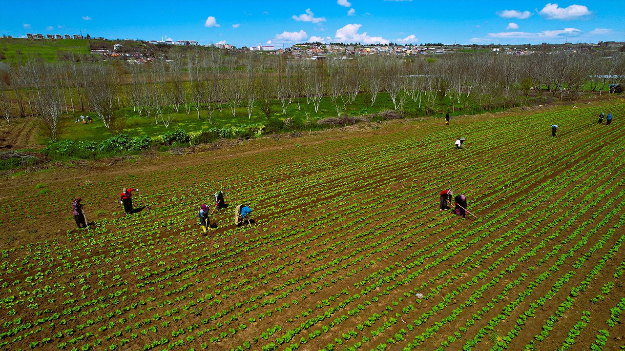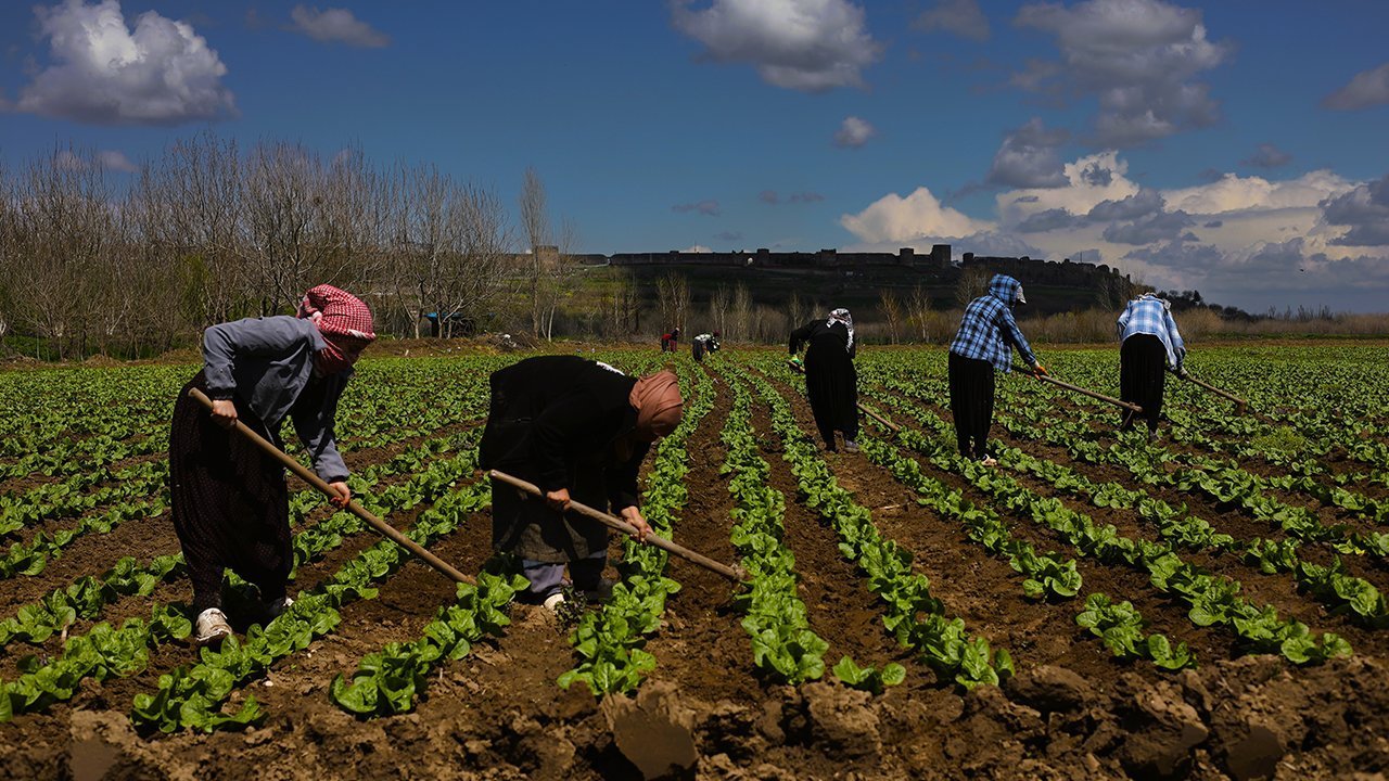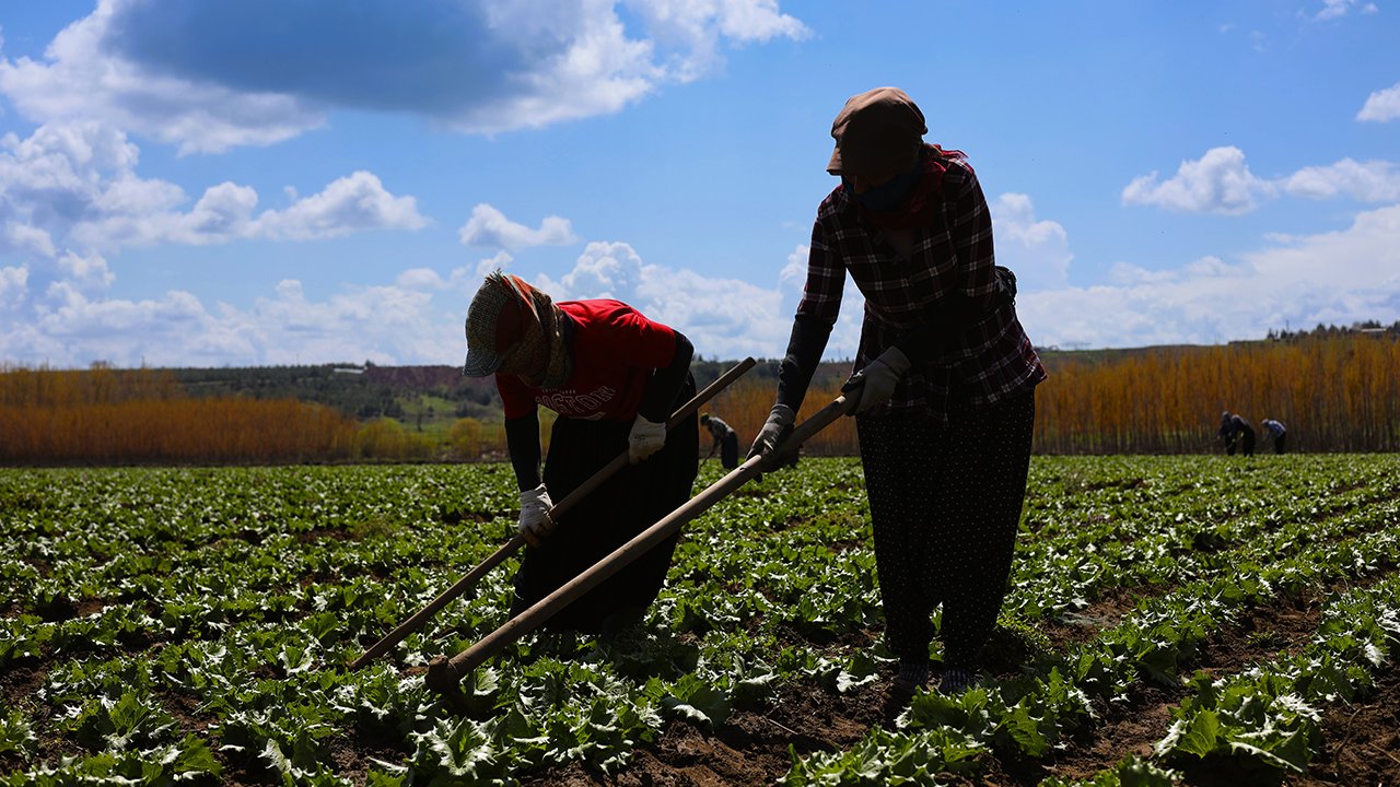 Hasat dönemine hazırlık yapan işçiler, tarlalarda çapalama işlemi gerçekleştirerek toprağı havalandırıyor ve yabani otları temizliyor.