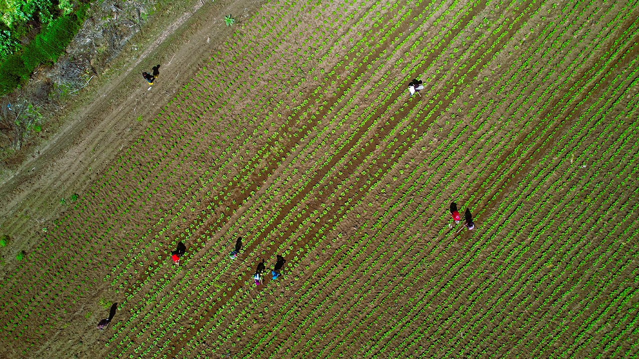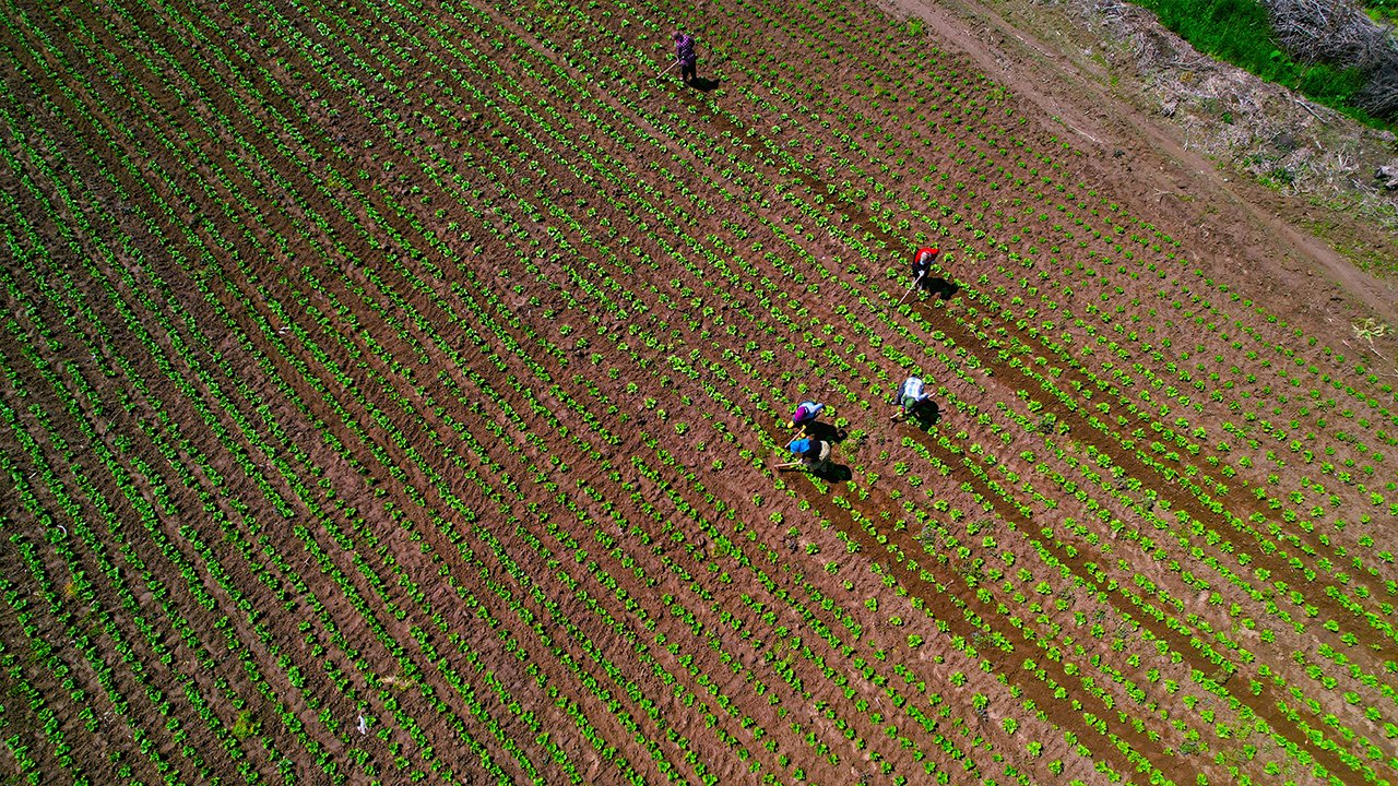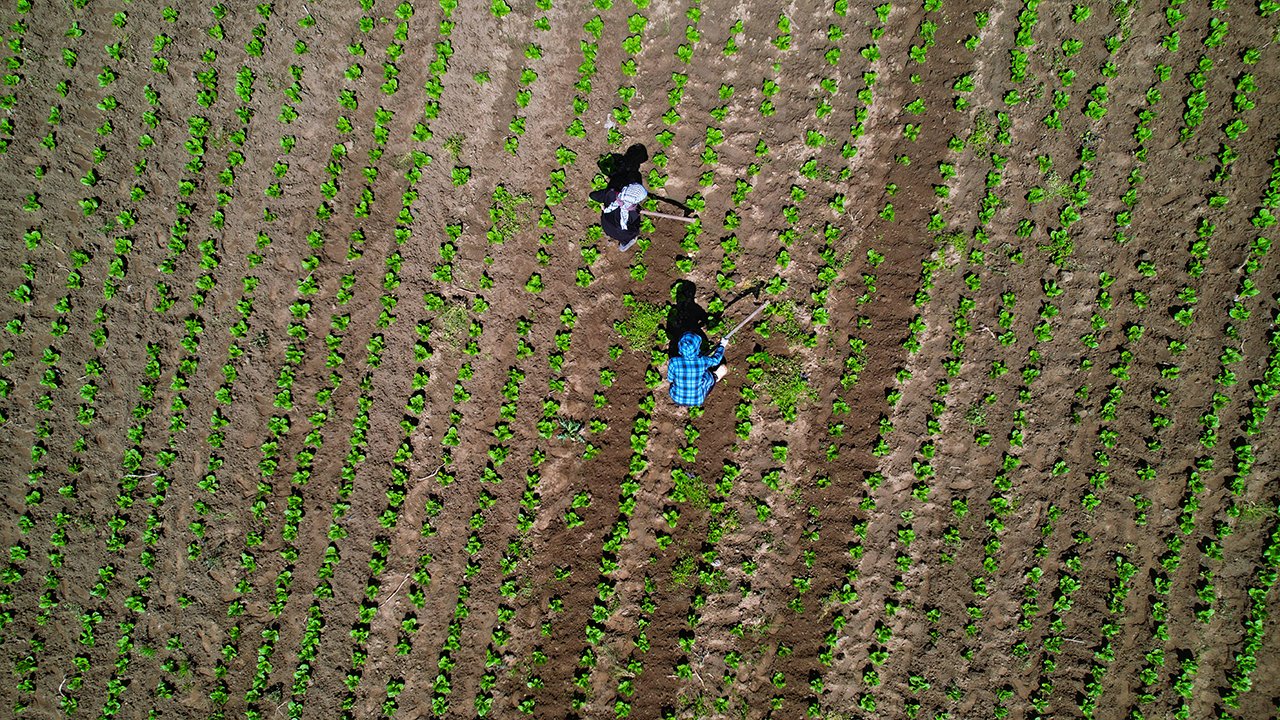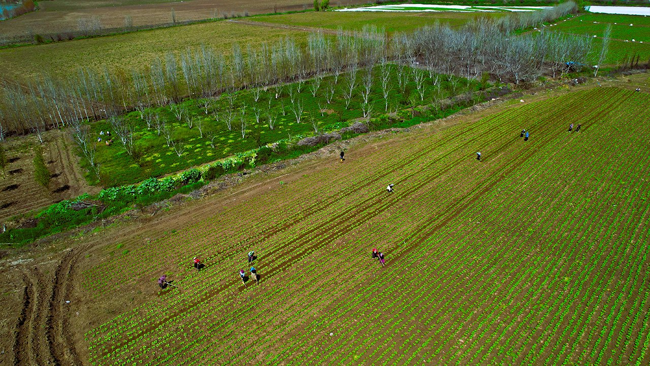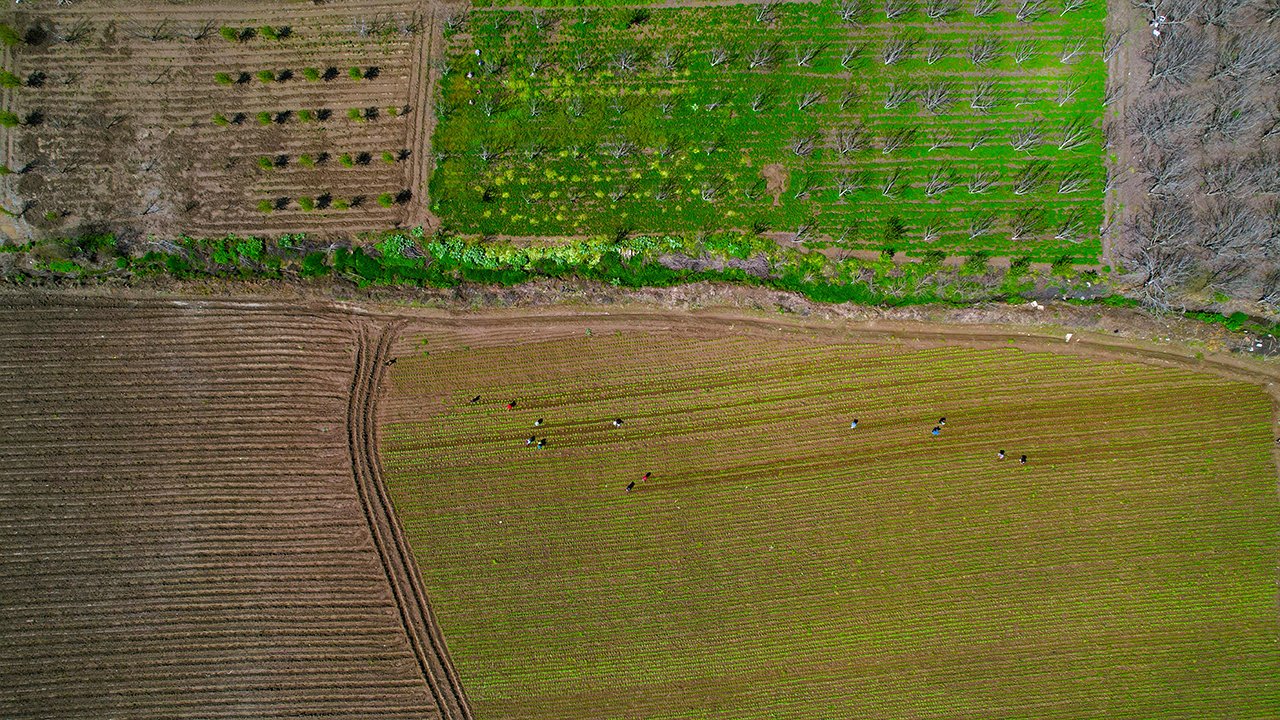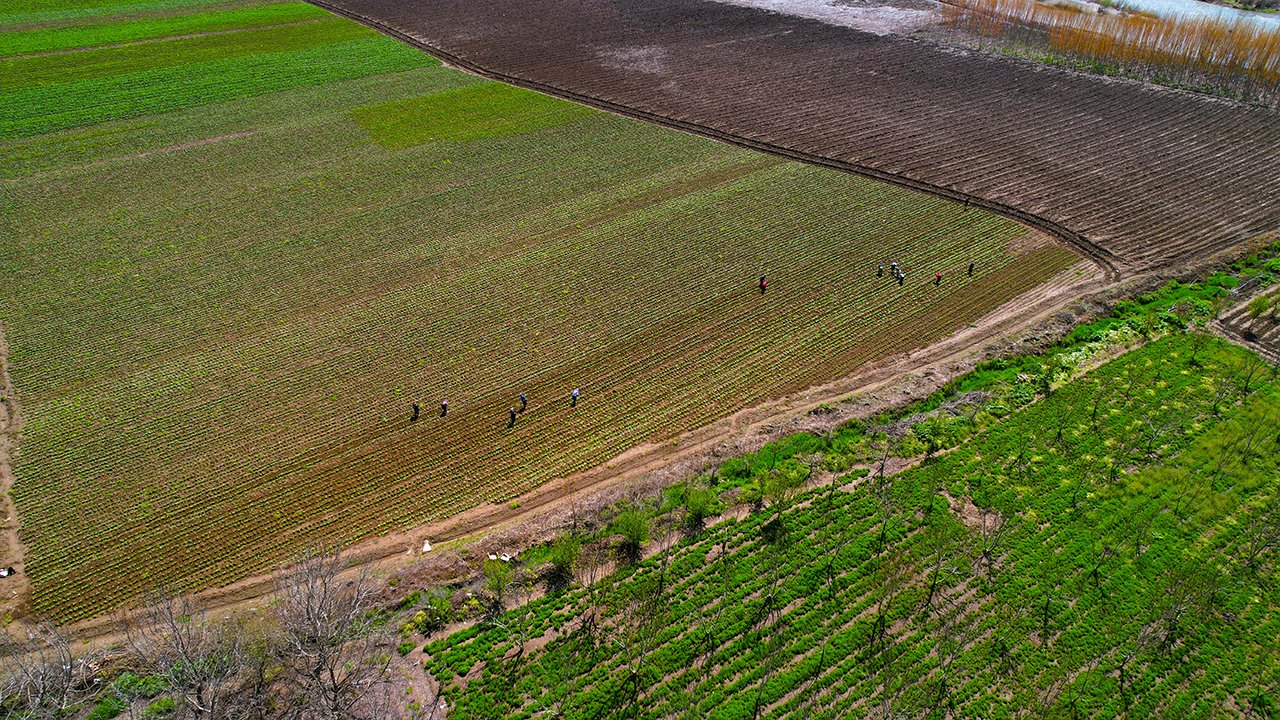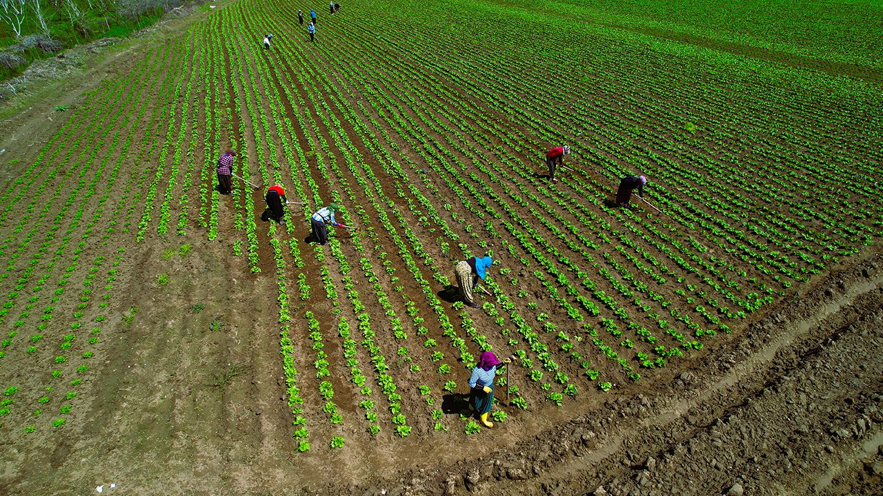 Hasat dönemine hazırlık yapan işçiler, tarlalarda çapalama işlemi gerçekleştirerek toprağı havalandırıyor ve yabani otları temizliyor.