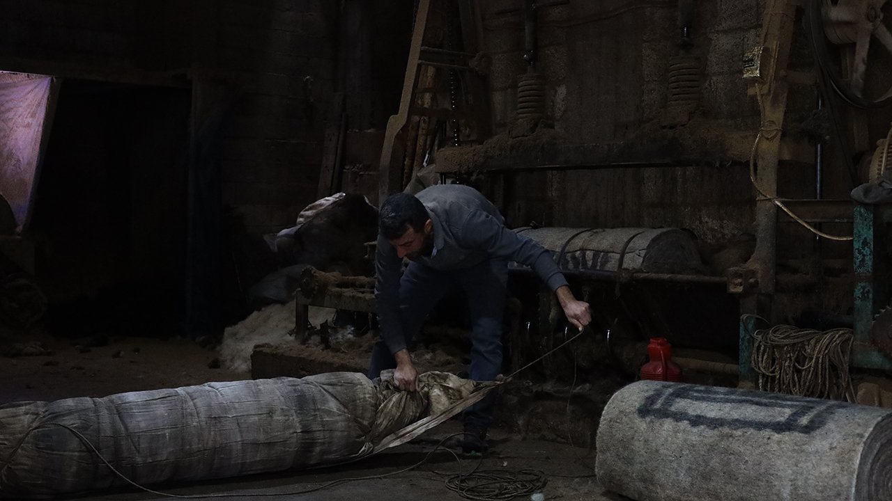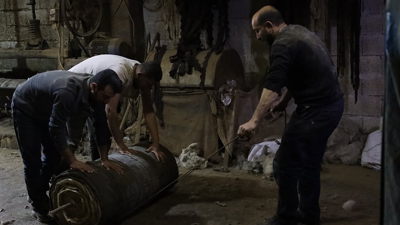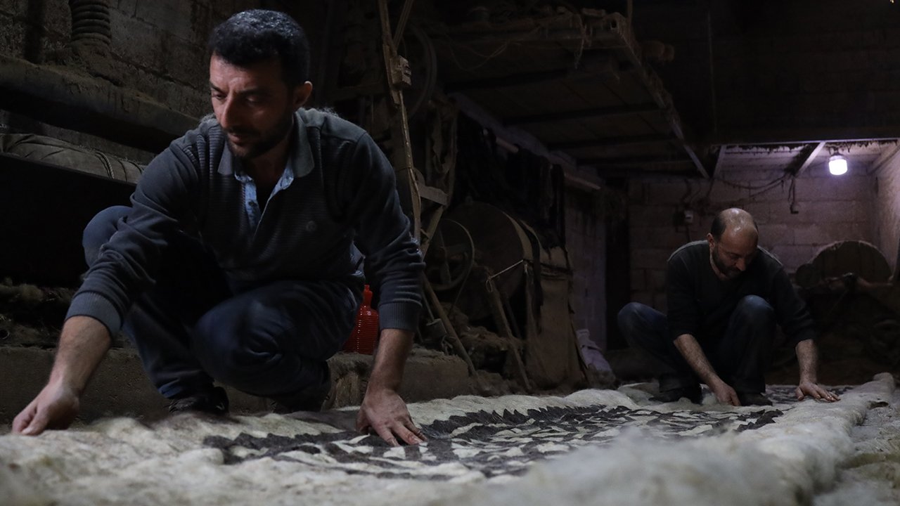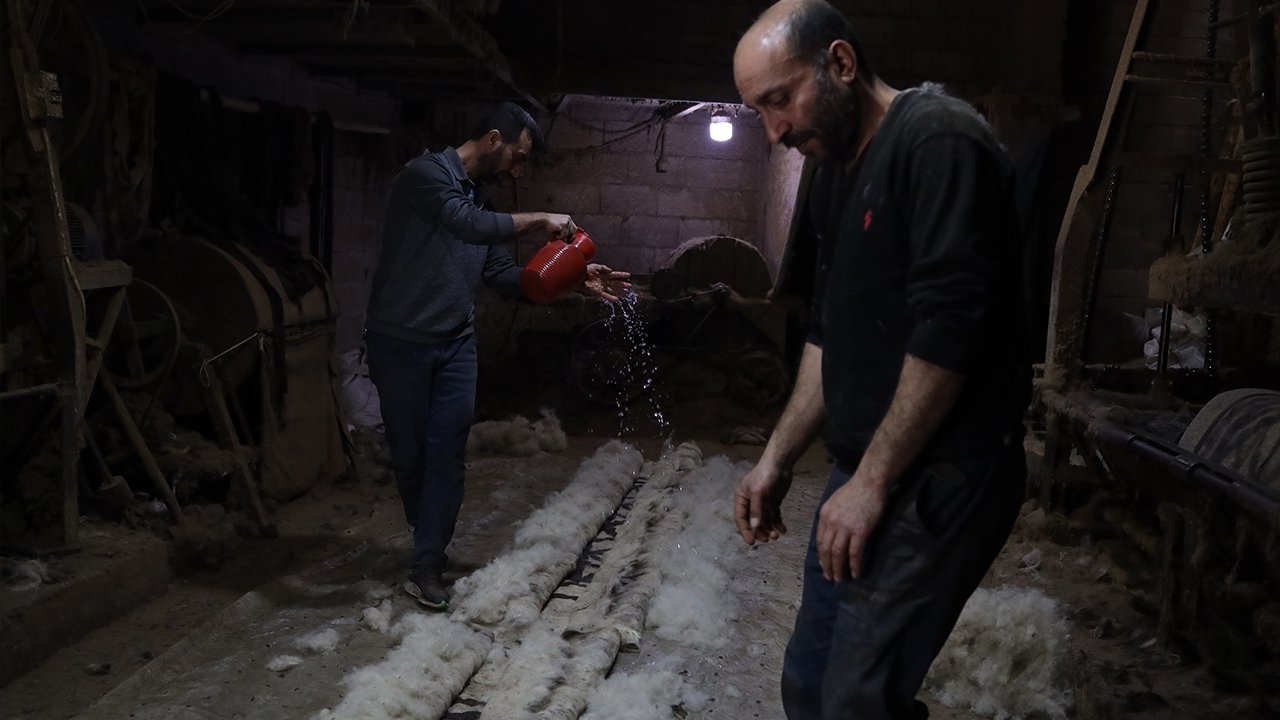 Tarihi kentte mesleğini sürdüren ustalar, koyun yününü geleneksel yöntemlerle işleyerek sanata dönüştürüyor.