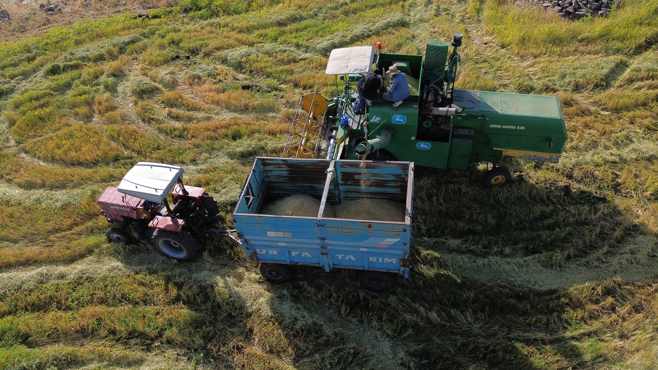 Mayıs ayında çoğunlukla taşlık arazilere ekilen çeltik, eylül ayında düz arazilerde biçerdöverle biçilirken, eğimli arazilerde ise işçiler tarafından orakla toplanıyor.
