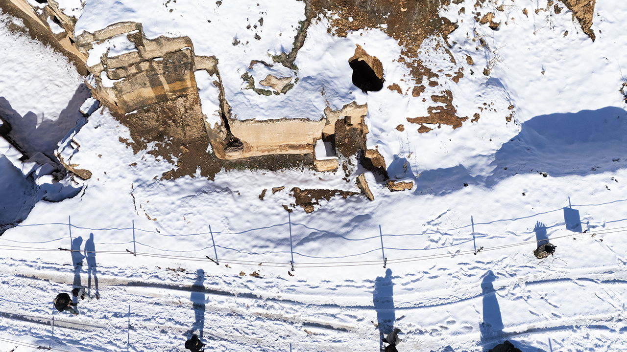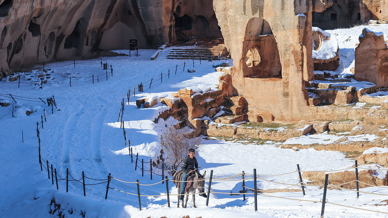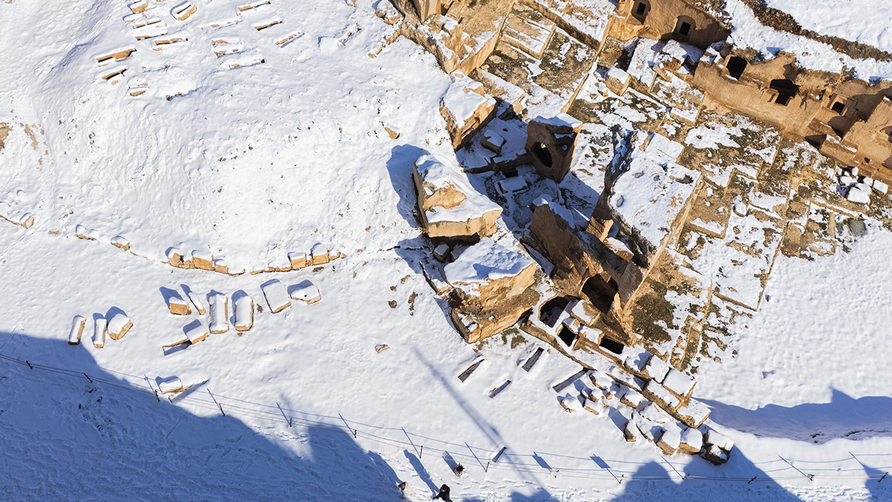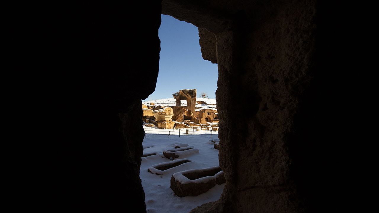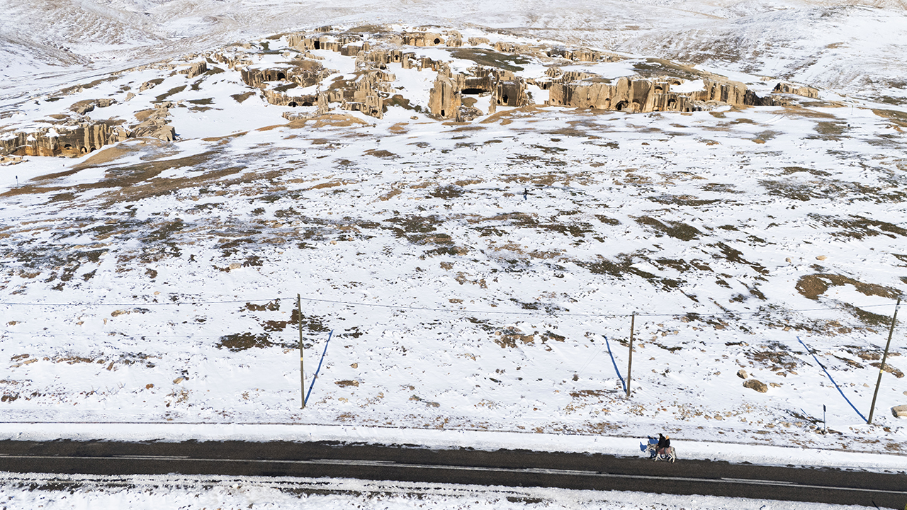 Kent merkezine yaklaşık 32 kilometre uzaklıkta yer alan ve açık hava müzesi konumundaki antik kentte oluşan görüntüler dronla kaydedildi.