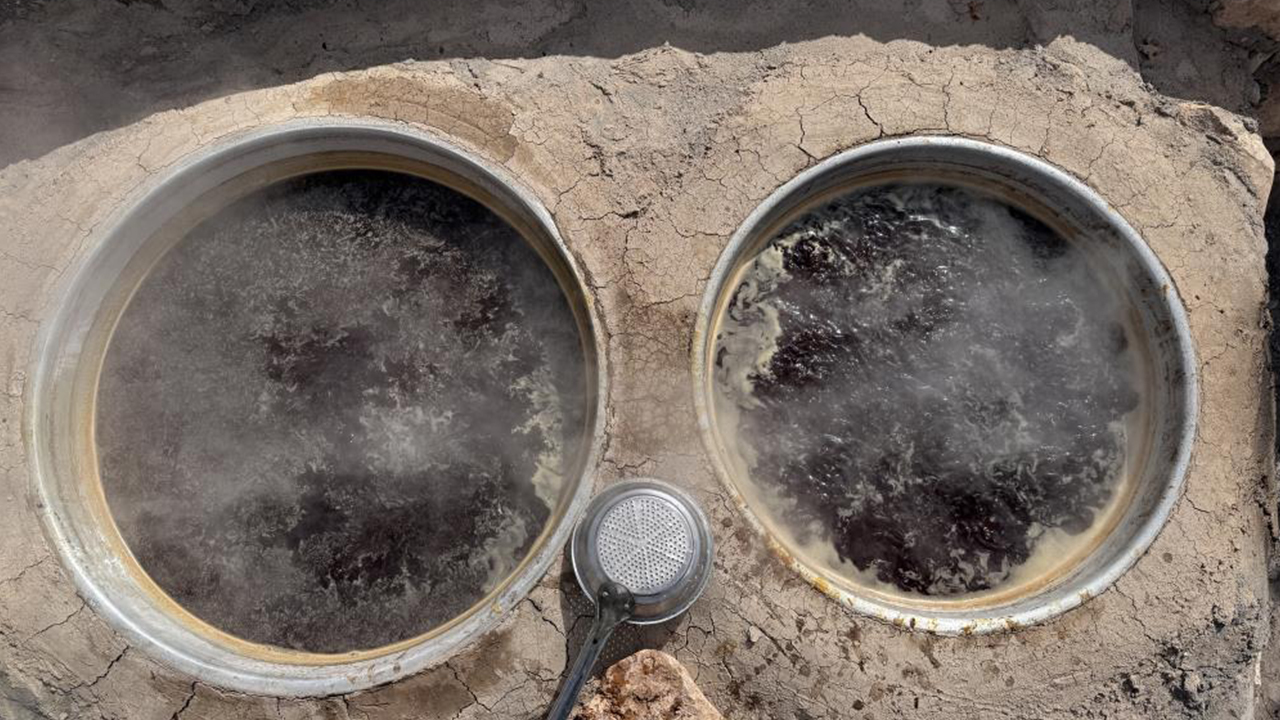 Pekmez yapımında bakır kapların önemine değinen Titiz, her bu kapları kalaylamak zorunda kaldıklarını ancak kalaycı bulamadıkları için alüminyum kaplara geçmek zorunda kaldıklarını anlattı.