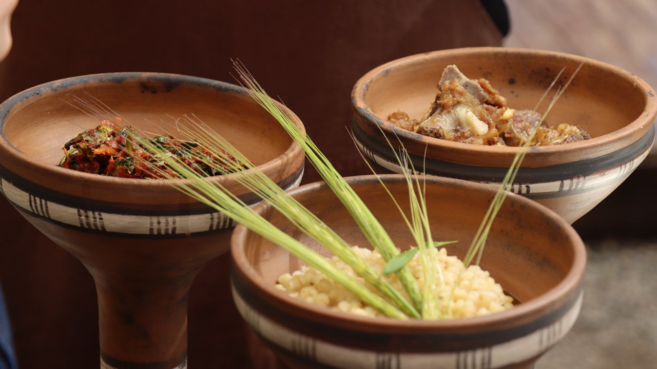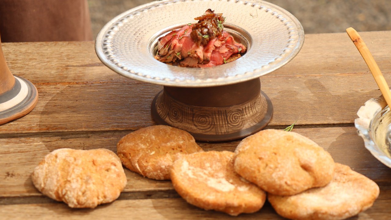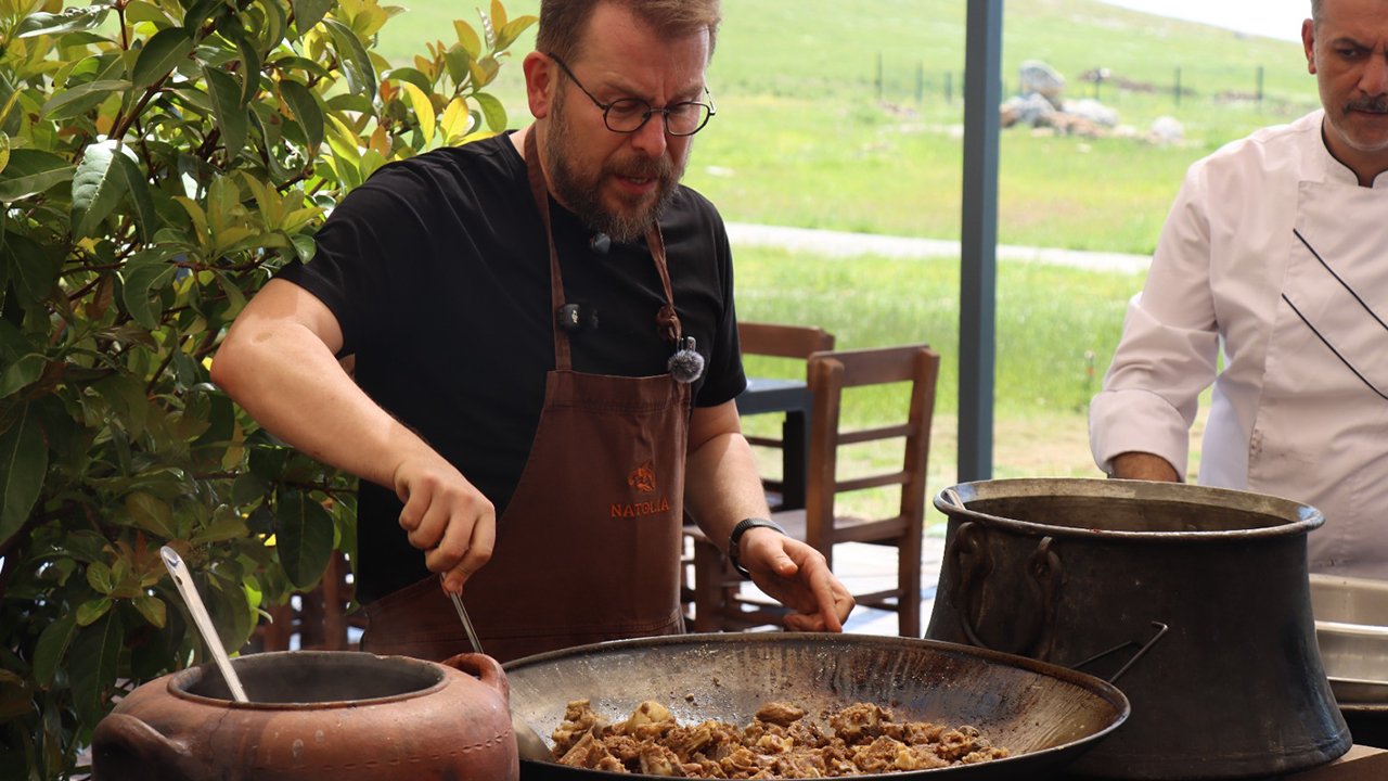 Usta şef menüsünde, Şanlıurfa'nın doğal buğdaylarından hazırlanan ekmek, yanık sadeyağ, koyun yoğurdu, mevsim otları, buğday lapası, kuzu kemikli et, az kavrulmuş Karacadağ pirincinden yaptığı yemekleri Karahantepe'de ilk kez sundu.