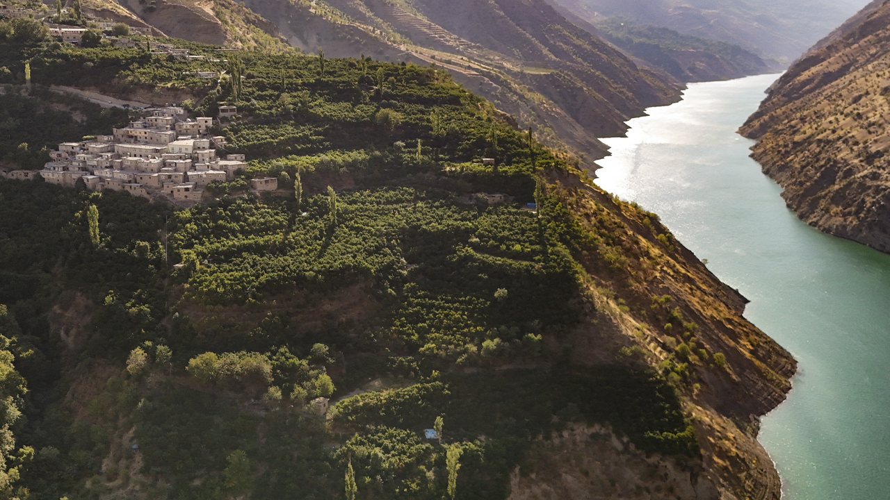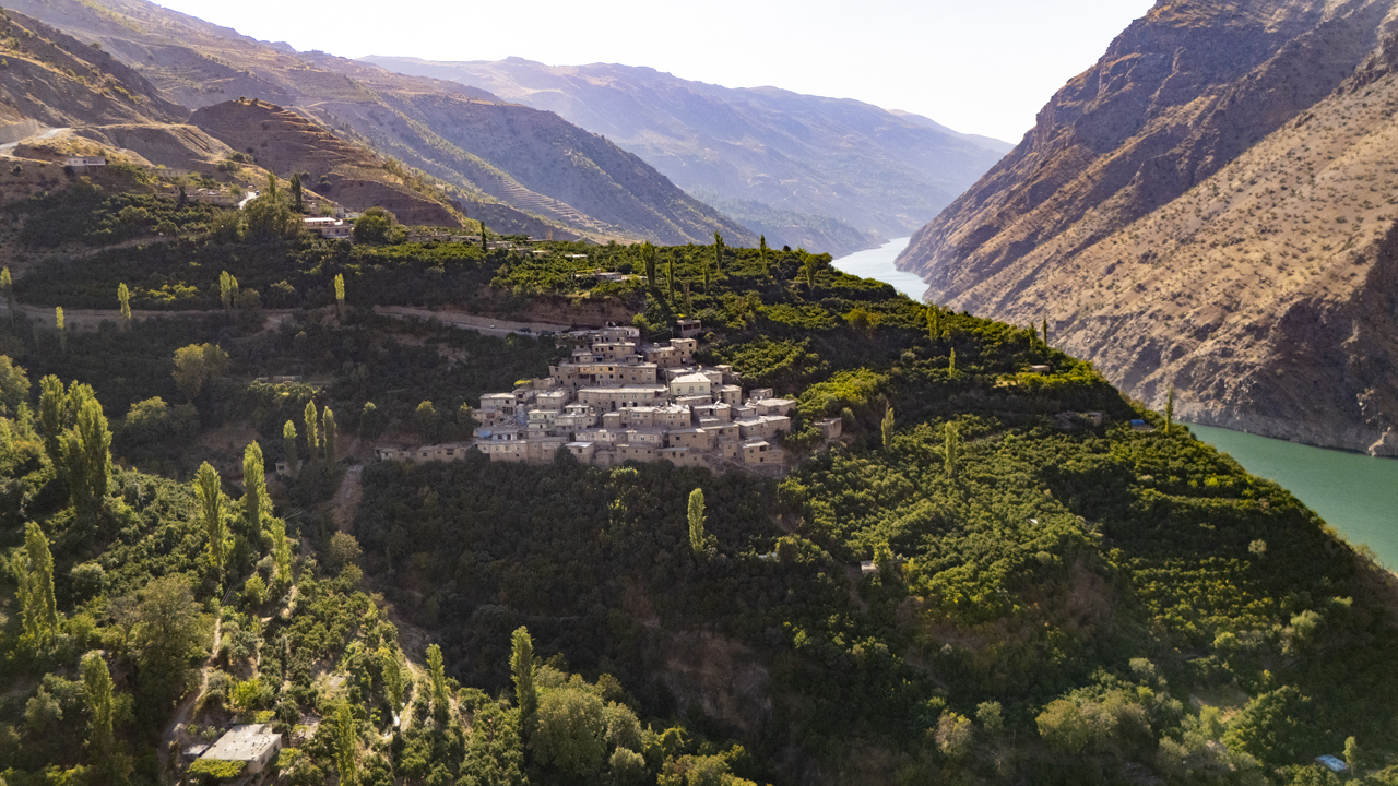 Zorlu doğa koşullarına rağmen verimli nar ağaçlarının yetiştiği köy, yemyeşil bitki örtüsüyle adeta bir vahayı andırıyor.