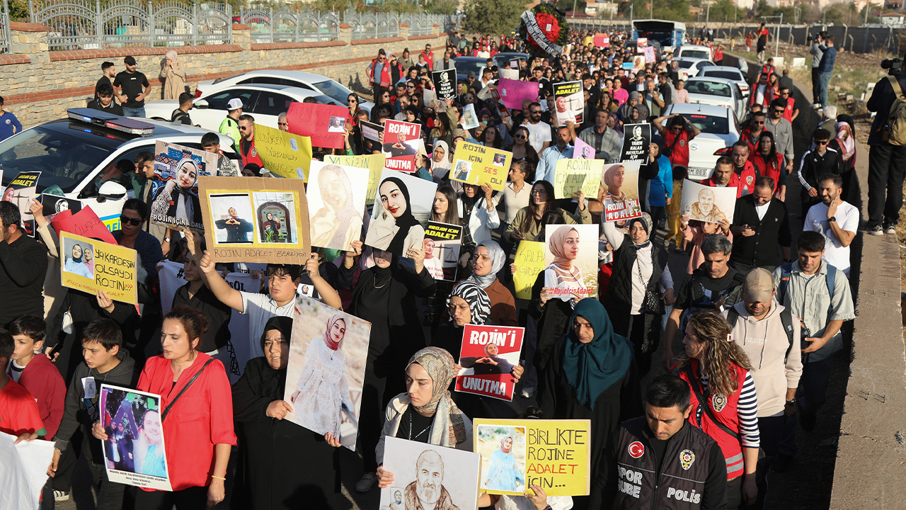 Yürüyüşte “İntihar değil, bu bir cinayet”, “Rojin’e uzanan eller kırılsın”, “Rojin için Adalet” ve “Rojin için ses ol” yazılı dövizler taşınırken sık sık “Rojin için adalet” sloganları atıldı.