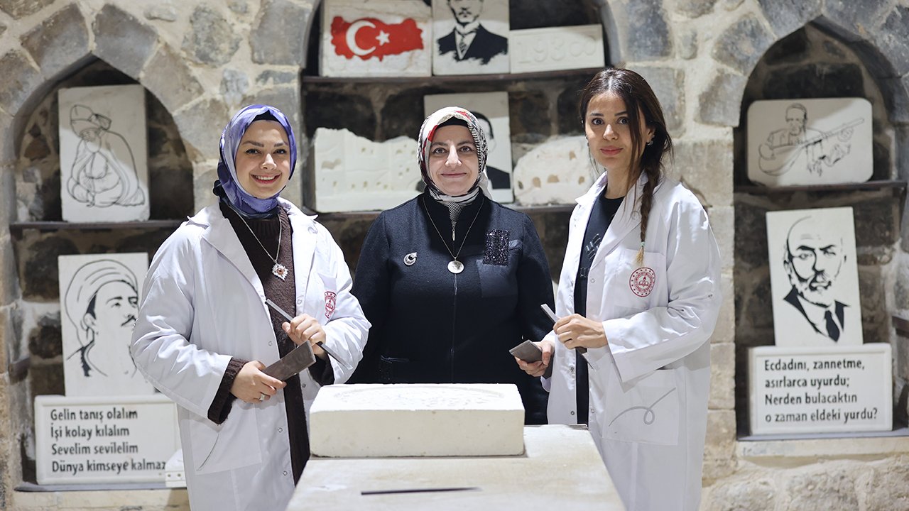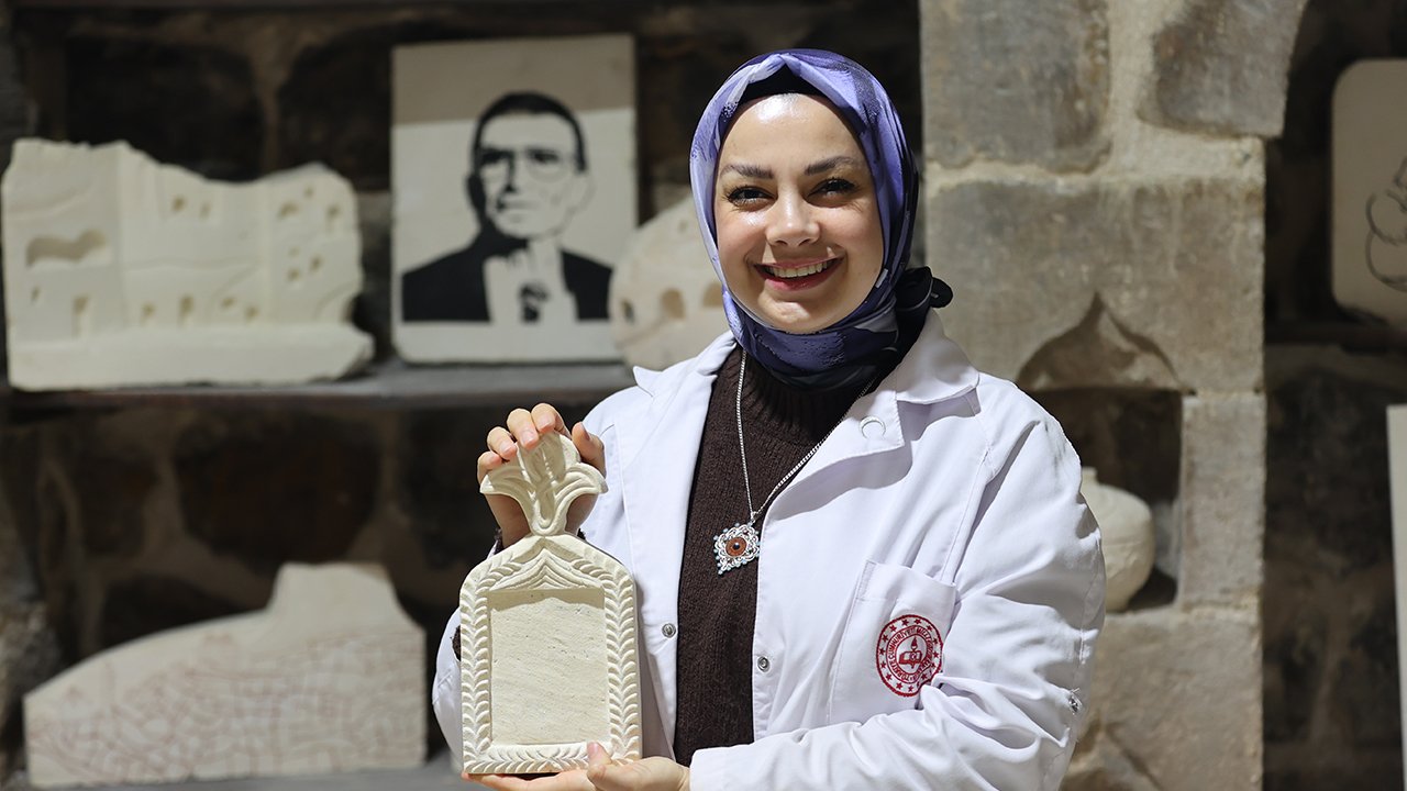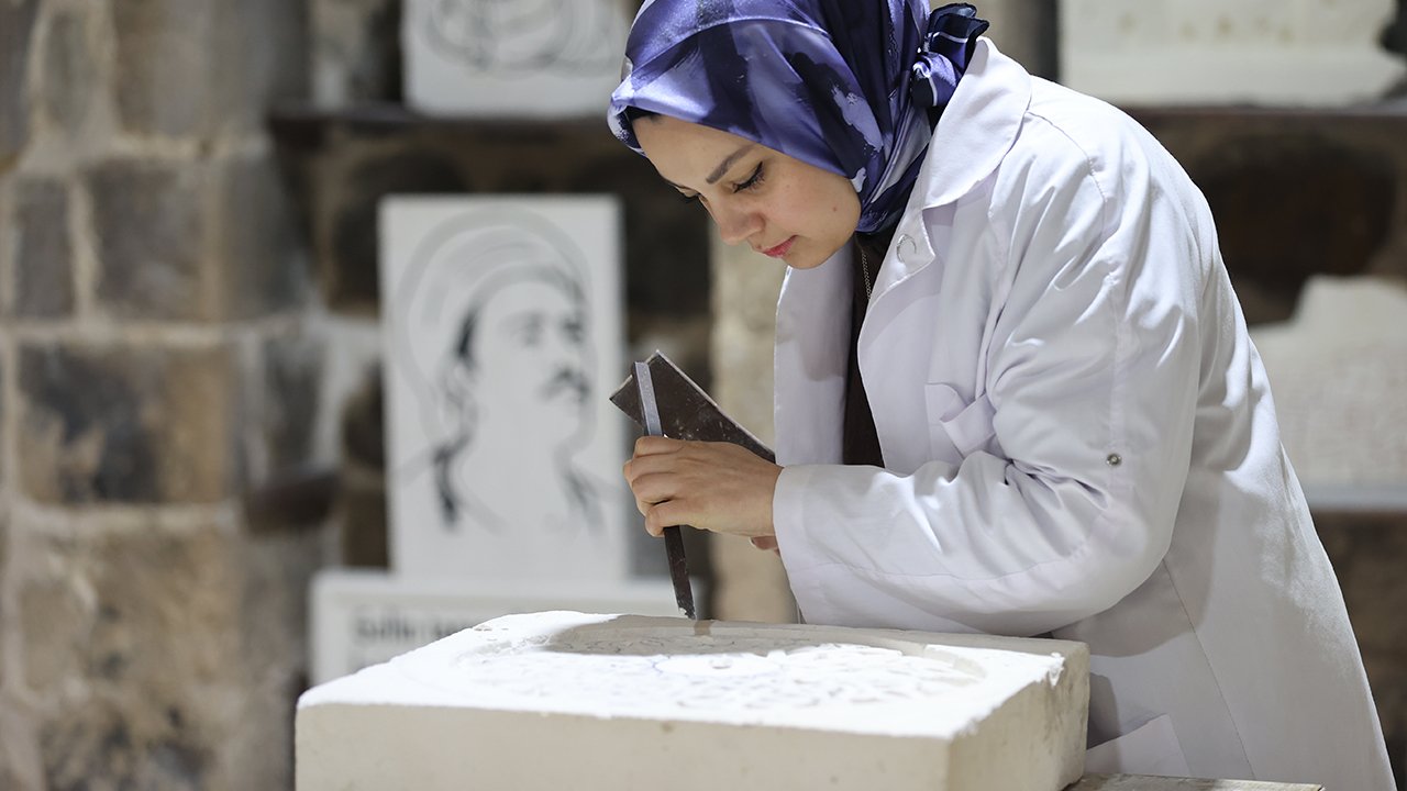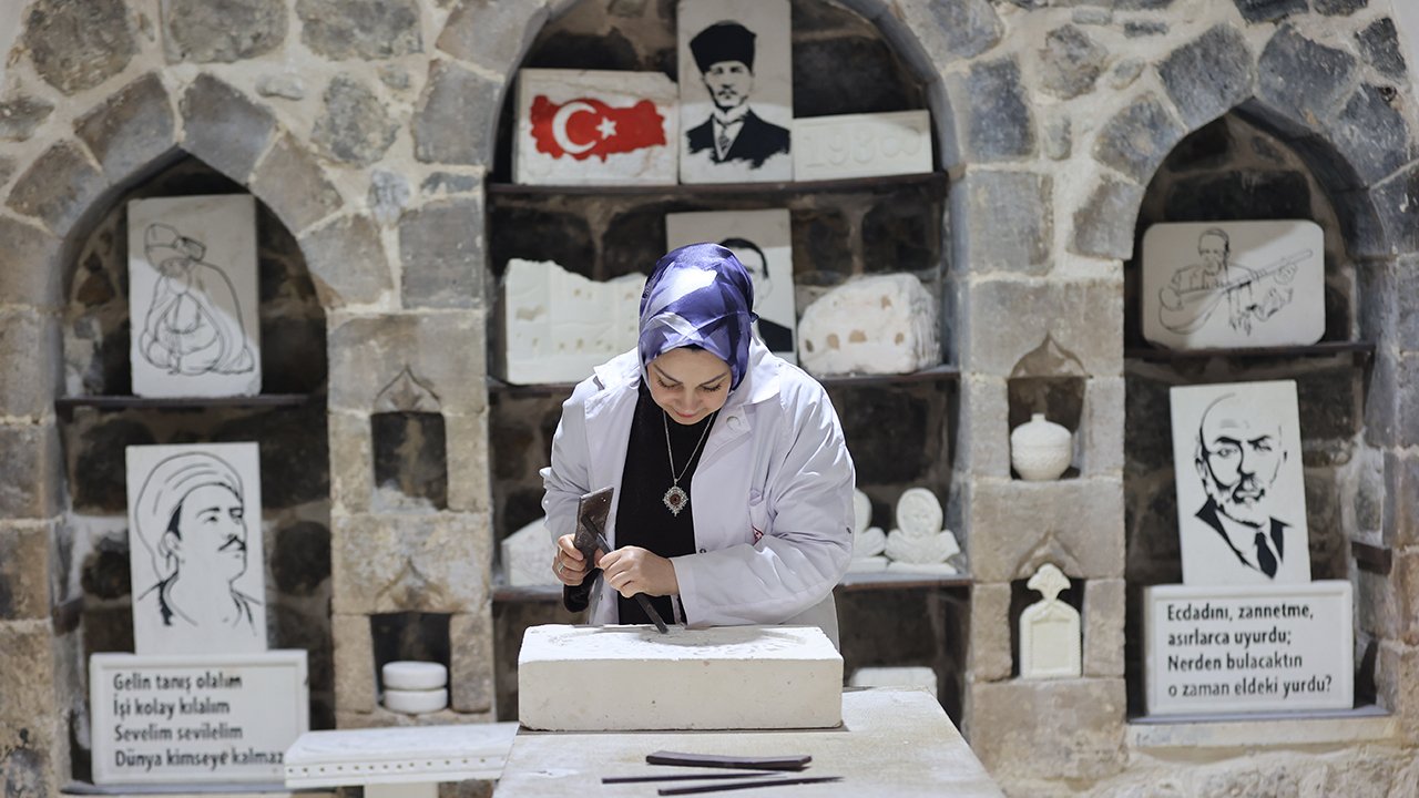 "Atölyede usta öğretici Hadra Tırpan, Mardin Artuklu Üniversitesi Güzel Sanatlar Fakültesinden mezun olduktan sonra Mardin Olgunlaşma Enstitüsünde çocukluk hayali olan taş işleme sanatıyla uğraştığını söyledi.