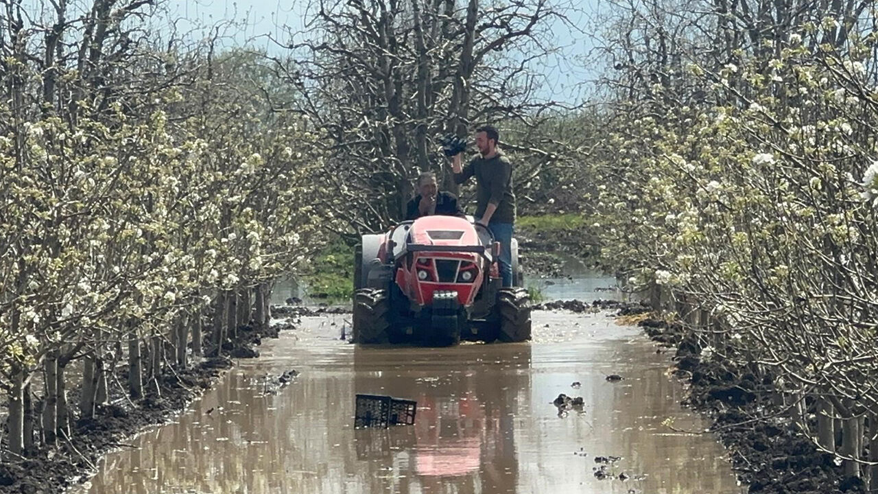 Armut bahçesine ilaçlama yapan üretici Turgay Koç ise yaşadıklarına zorluğa dikkati çekerek, "Traktörlere, bize, çiftçiye, meyve ağaçlarına yazık. 9 dönüm armut bahçemin büyük bölümü su altında. Bir hafta 10 gün su çekilmezse kuruyacak. Önümüzdeki günler de yağışlı görünüyor, çaresiziz" diye konuştu.