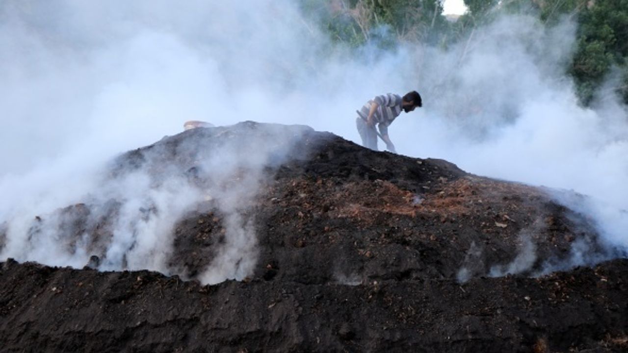 İşçiler, sabah odun toplayarak başladıkları mesailerini, odun kömürü için yaktıkları ateşin başında gece yarısına kadar devam ettiriyor.