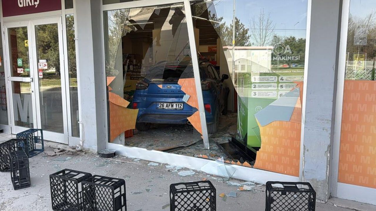 Yol kenarındaki süpermarketin camından içeri giren otomobil, büyük maddi hasara neden oldu. Kazada şans eseri yaralanan olmadı. Olayla ilgili inceleme başlatıldı.