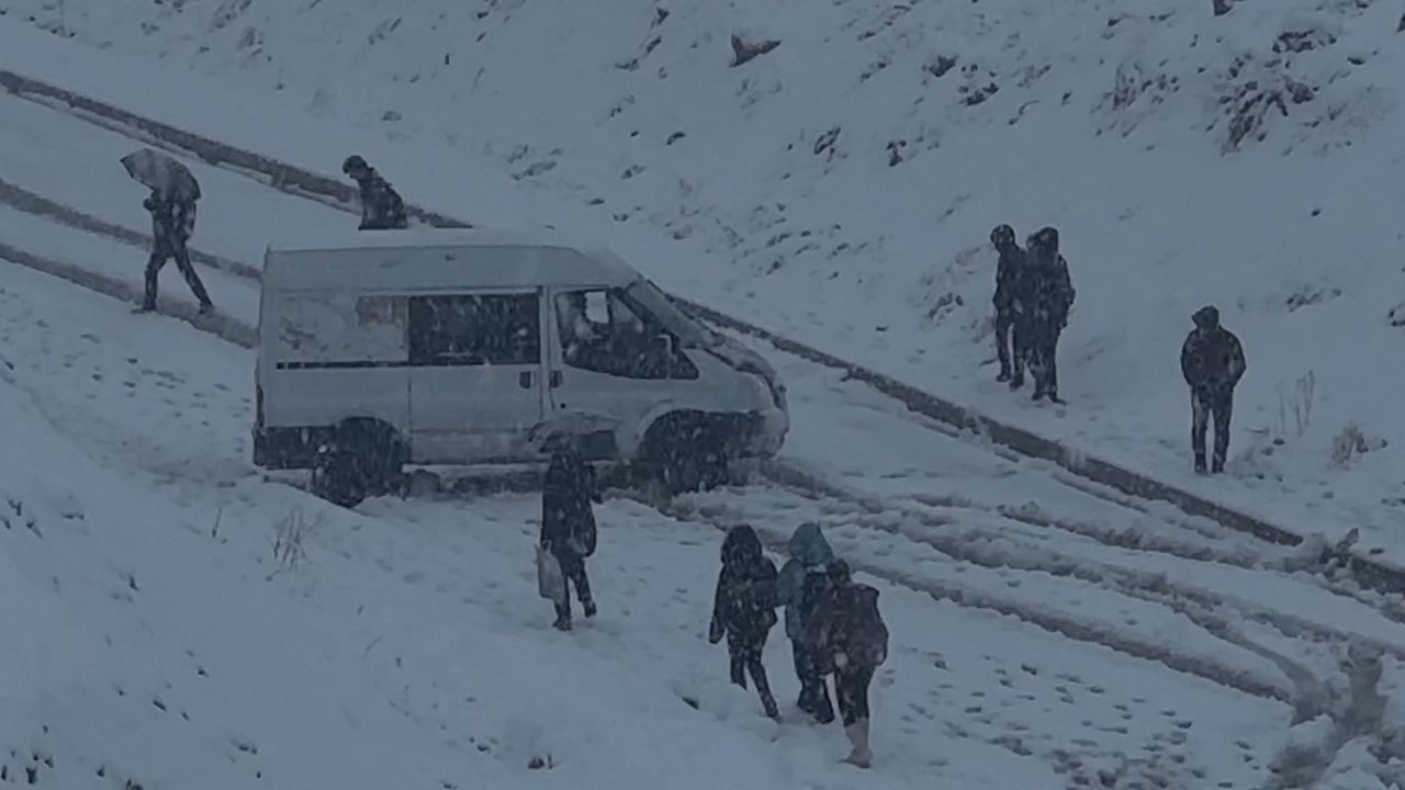 Özellikle yokuşlu yollarda ilerlemekte güçlük çeken bazı araçlar yolda mahsur kalırken, sürücülerin yardımına diğer vatandaşlar koştu.