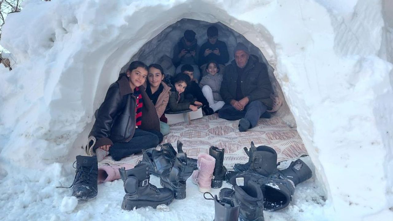 Çocuklarıyla birlikte igloda oturmanın mutluluğunu yaşan Yunus Bal, “Kar zorluklarıyla birlikte mutluluğu da getiriyor. Çocuklarımız sevinsin istedik” dedi.