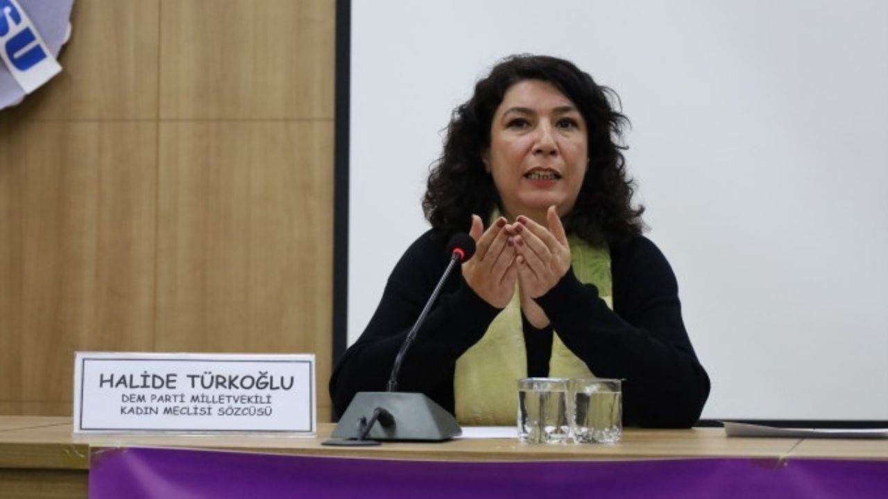 Süreç karşıtı olanları eleştiren Halide Türkoğlu, barış sürecinde kadınların özne olması durumunda sorunların çözüme kavuşacağını belirtti. Halide Türkoğlu, “Süreç karşıtı olanlar, bu ülkenin en köklü sorununa çözüm üretmek yerine hamaset siyaseti yapıyorlar. Yani AKP karşıtı olmakla süreç karşıtı olmayı bir tutmuşlar. Algı yönetimlerine karşı mücadele etmeye çalışıyoruz. Ve bunu en iyi anlayanlar da kadınlar oluyor. Erkek egemen düzenin içinde hamaset siyasetini en çok yapanlar da erkekler oluyor. Tüm dünya deneyimleri bize gösterdi ki barış kolay inşa edilen bir şey değil. Toplumsal barışın inşasında kadınlar özne olduğunda sorun daha hızlı çözülüyor. Kadınlar, toplumsal barışta neyin nasıl olması gerektiği kabiliyetine sahip. Toplumsal barışın garantörü kadın özgürlük ve eşitlik mücadelesidir. Ancak en çok sözleri kesilen de kadınlar oldu, anneler oldu. o yüzden bizi uzun soluklu bir mücadele bekliyor. Bazen inişli çıkışlı oluyor ama kadınların barış ısrarı iradeye sahip. O yüzden bulunduğumuz her yerde barışa dair ısrarımızı ve Kürt sorunun demokratik çözümüne dair ısrarımızı sürdürmeliyiz. Komisyon Sayın Öcalan ile görüşmeye gidecek ve ardından Meclis’e yasa teklifleri gelmesi bekleniyor. Birincisi demokratik entegrasyon yasalarıdır. Bu devletin demokratikleşmesi için önemlidir. İnfaz yasası, kayyım politikaları, anadil hakkı, eşit yurttaşlık gibi çok sayıda düzenleme gerektiren durum var" diye konuştu.