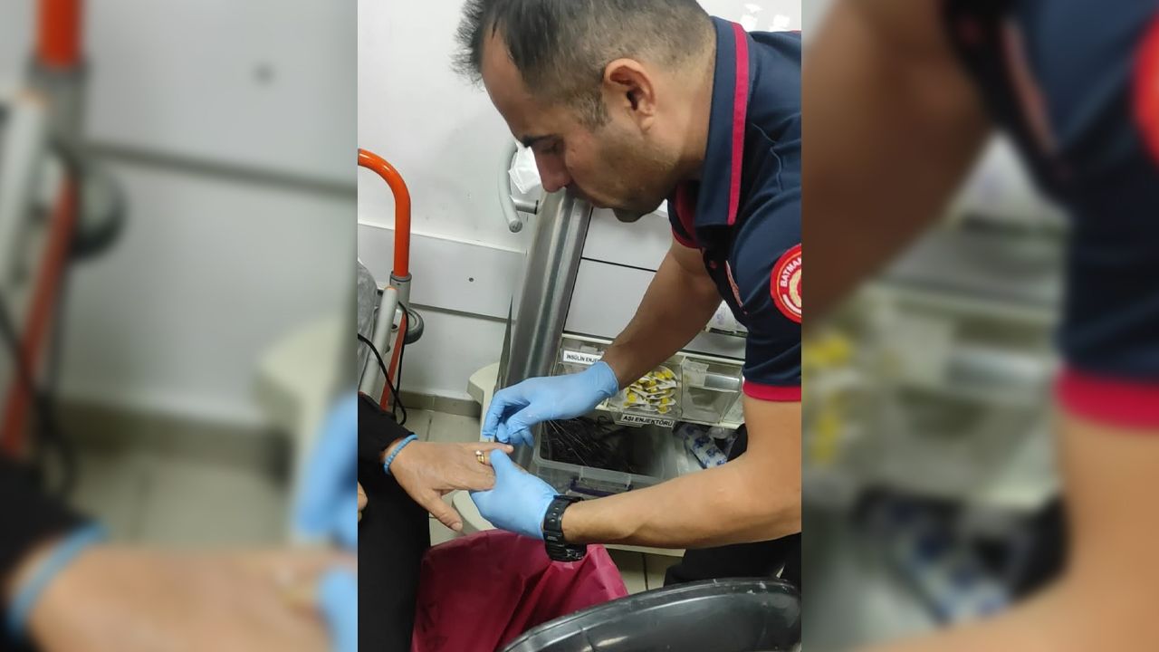 Tüm çabalara rağmen yüzüğü çıkaramayan sağlık ekipleri, itfaiye ekiplerinden yardım istedi.