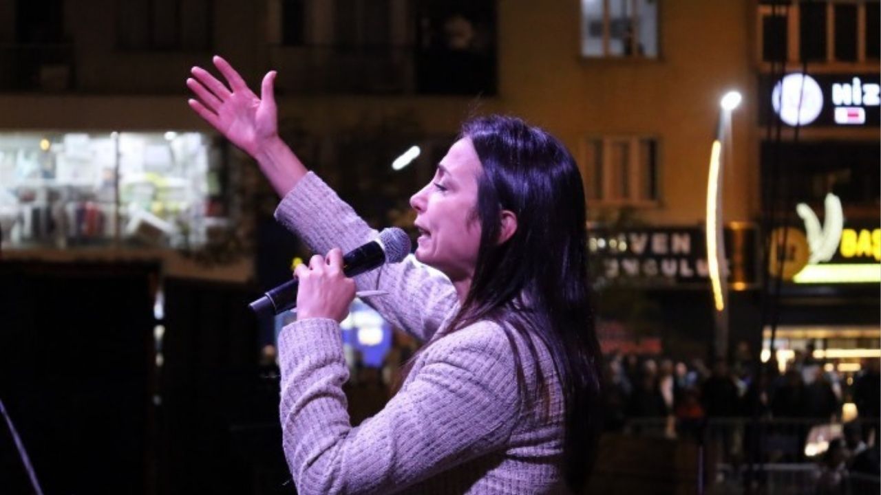 Hakkari’de düzenlenen “Barış ve Demokratik Toplum” şöleninde DEM Parti Eş Genel Başkanı Tülay Hatimoğulları konuştu.