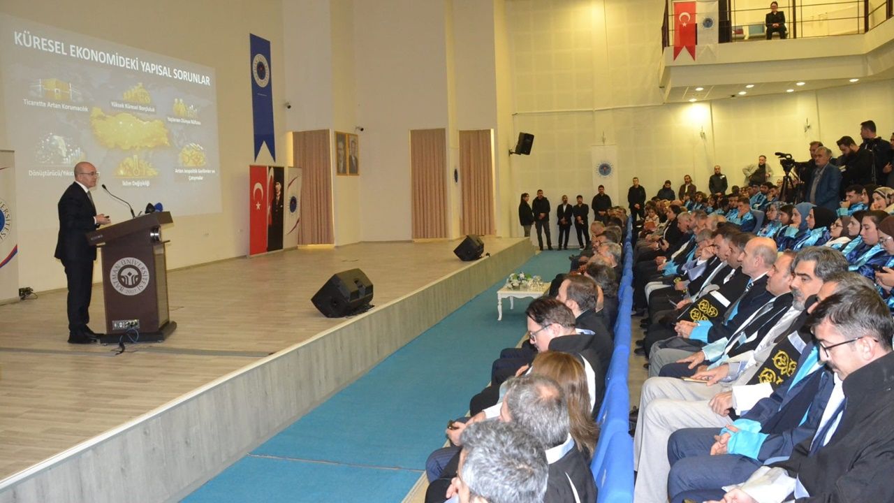 Hazine ve Maliye Bakanı Mehmet Şimşek, Batman'da "Küresel Meydan Okumalar ve Türkiye" konulu konferansa katıldı.