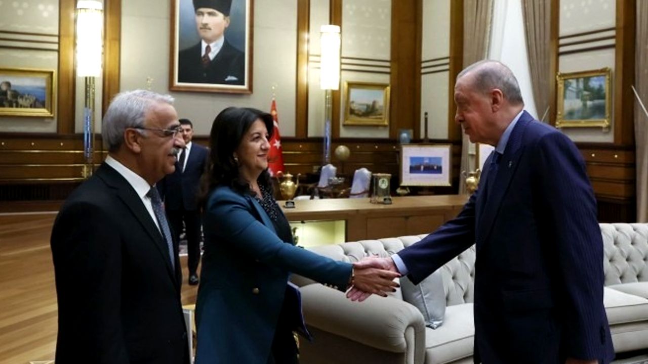 Halkaların Eşitlik ve Demokrasi Partisi (DEM Parti) İmralı Heyeti üyeleri Mithat Sancar ve Pervin Buldan, Cumhurbaşkanı Tayyip Erdoğan ile yapacakları görüşme için Cumhurbaşkanlığı Küllisyesi'ne geldi.