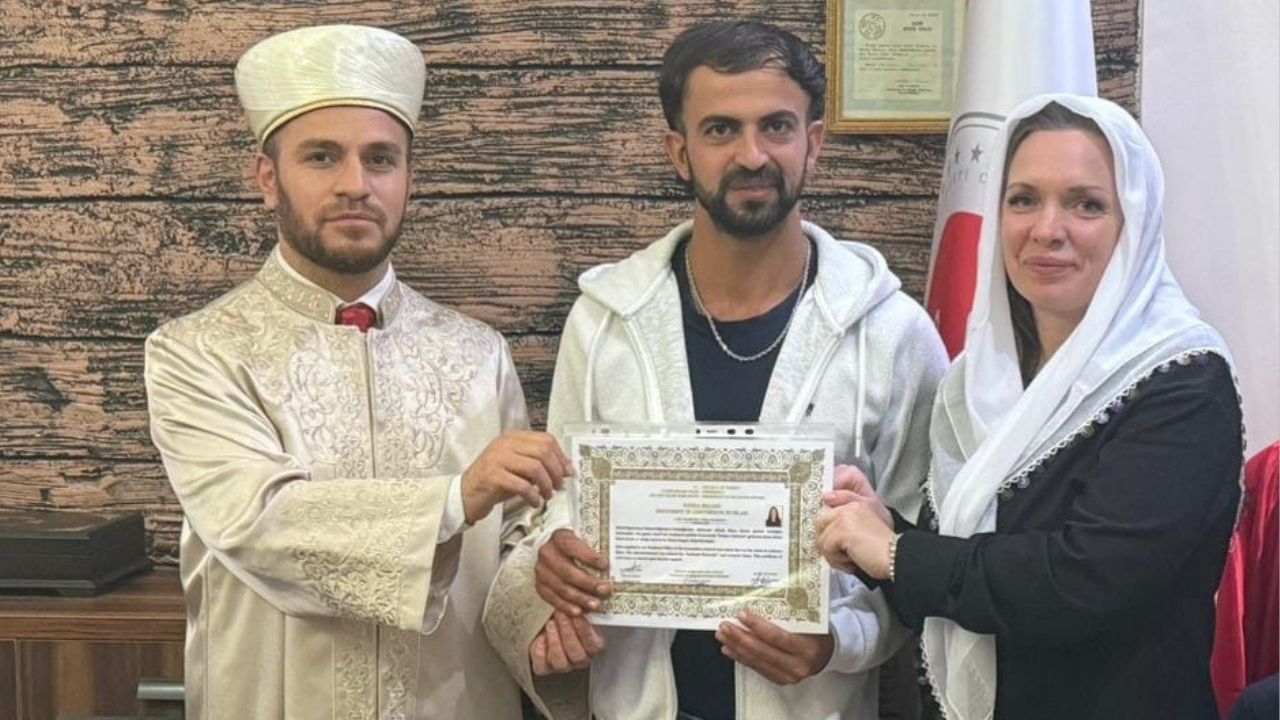 İlçe Müftüsü Lokman Çeven, Müftülükte gerçekleştirilen ihtida merasiminde, İslam'ın temel prensiplerini anlatarak, Engmanin'i bilgilendirdi.
