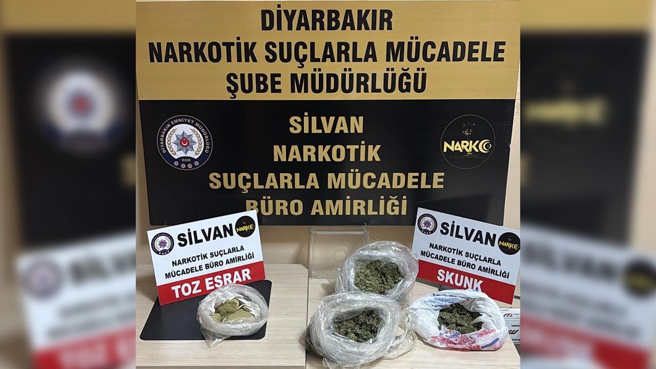 Diyarbakır İl Emniyet Müdürlüğü Narkotik Suçlarla Mücadele Şube Müdürlüğü ekipleri, uyuşturucu madde ticareti yapan şahıslara yönelik Silvan ilçesinde çalışma yürüttü. Silvan İlçe Emniyet Müdürlüğü ile koordineli olarak yürütülen çalışmalar sonucunda belirlenen 5 adrese, şafak vakti eş zamanlı operasyon düzenlendi. Operasyonlarda yapılan aramalarda toplam 450 gram skunk maddesi ile 150 gram toz esrar maddesi ele geçirildi.
